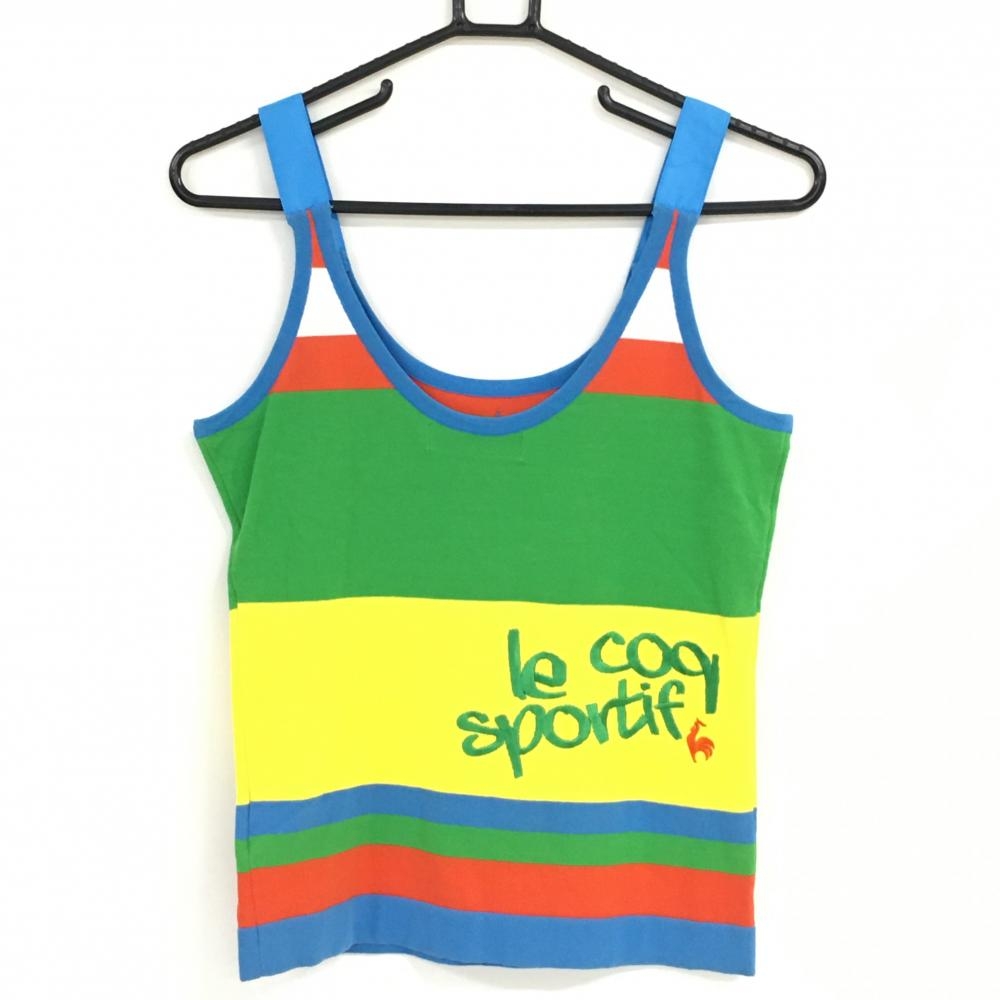 ルコック ニットベスト グリーン×イエロー ビスチェ 韓国モデル レディース S ゴルフウェア le coq sportif