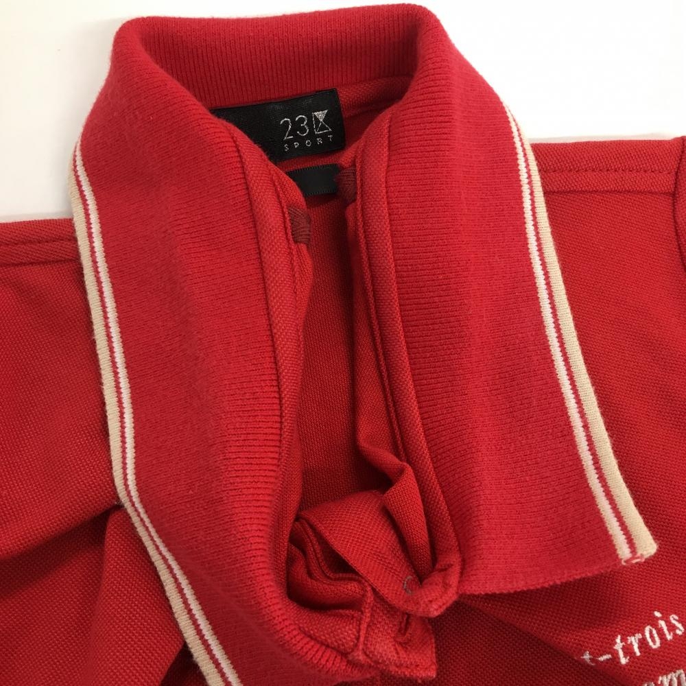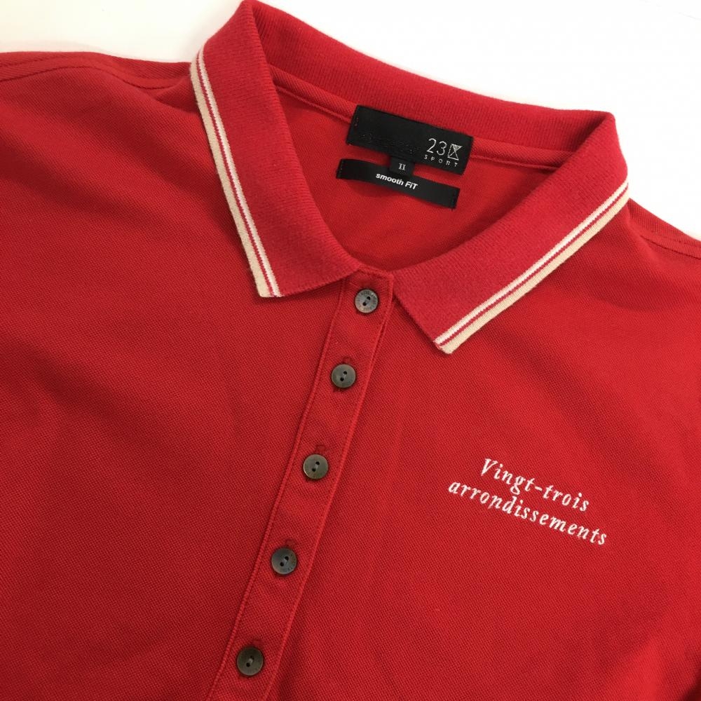 23区 半袖ポロシャツ レッド×白 襟、袖ライン レディース II(L) ゴルフウェア 23区