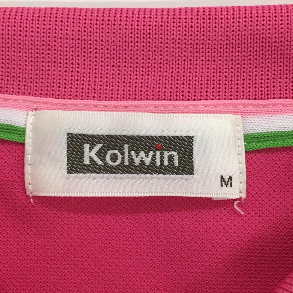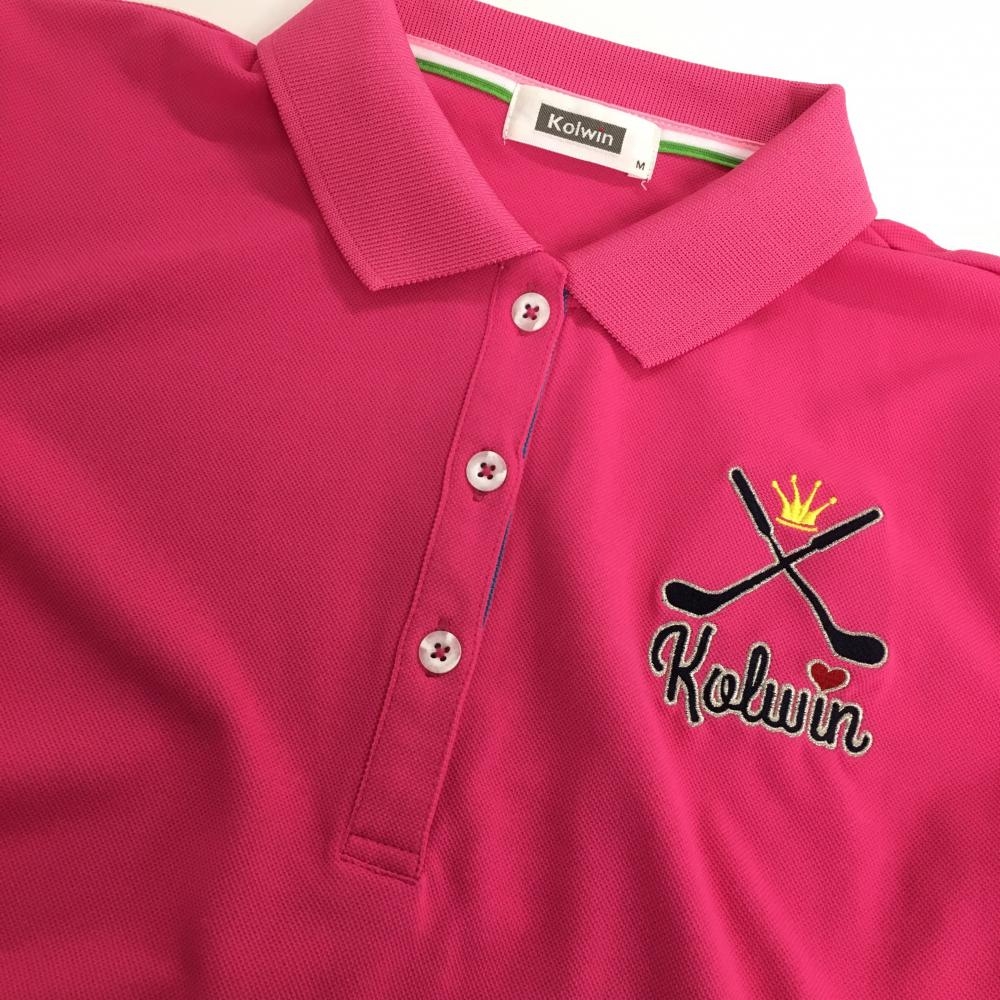 【超美品】コルウィン 半袖ポロシャツ ピンク×黒 ロゴ刺しゅう レディース M ゴルフウェア Kolwin