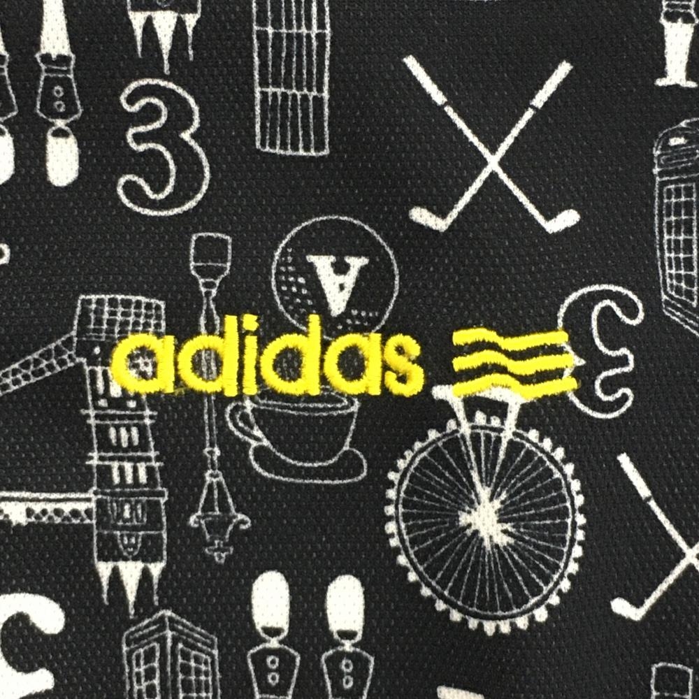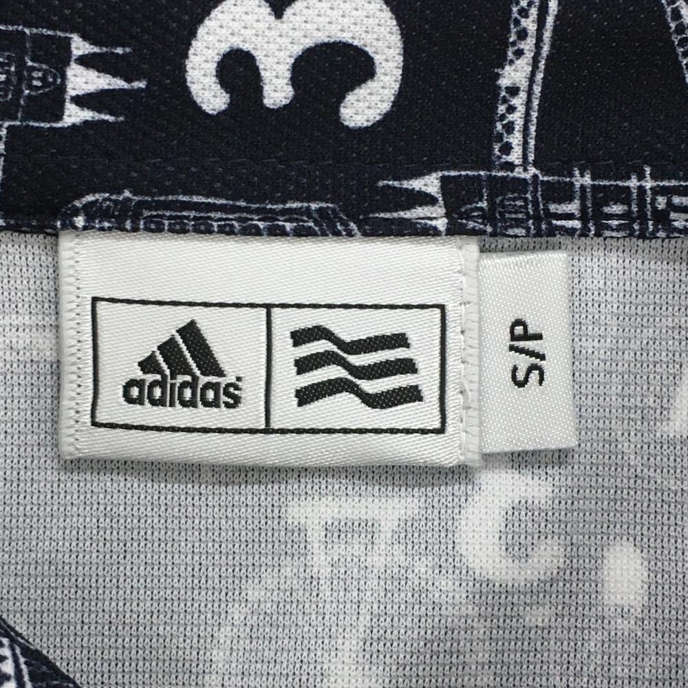 【超美品】アディダス 半袖ポロシャツ ネイビー×白 総柄 ビッグベン ロゴ刺しゅう レディース S/P ゴルフウェア adidas