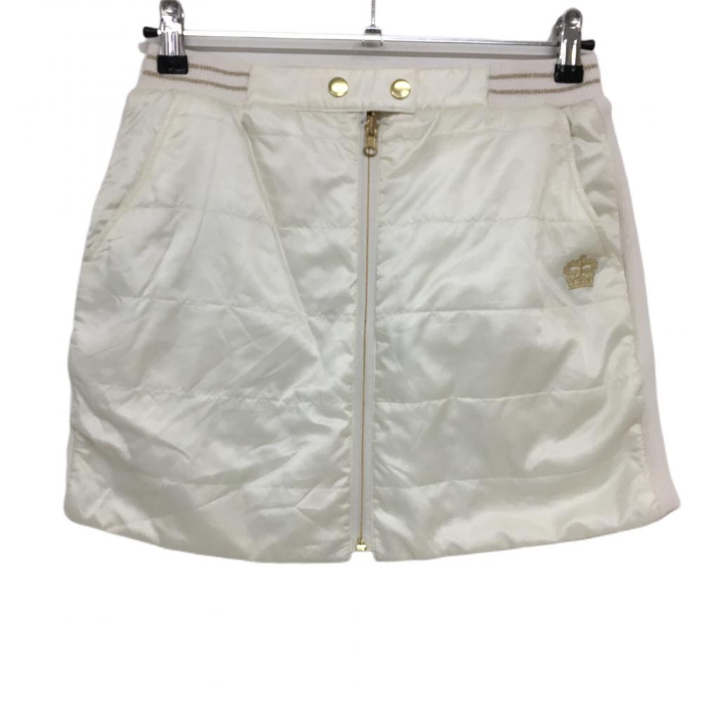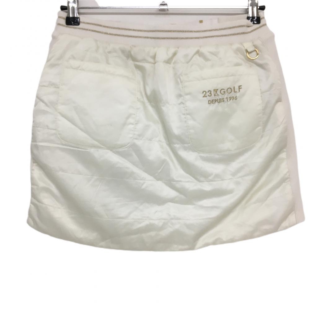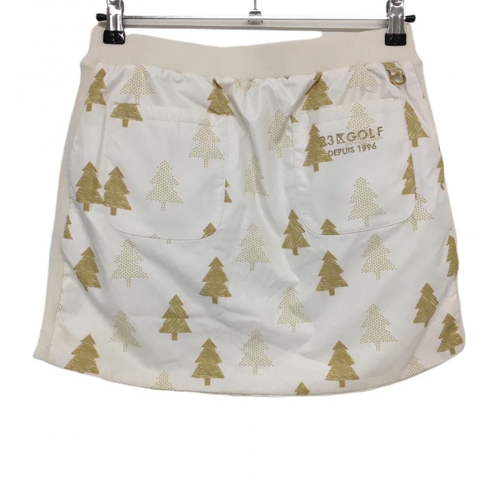 23区ゴルフ リバーシブル中綿スカート 白×イエローブラウン ツリー柄 センタージップ レディース I(M) ゴルフウェア 23区