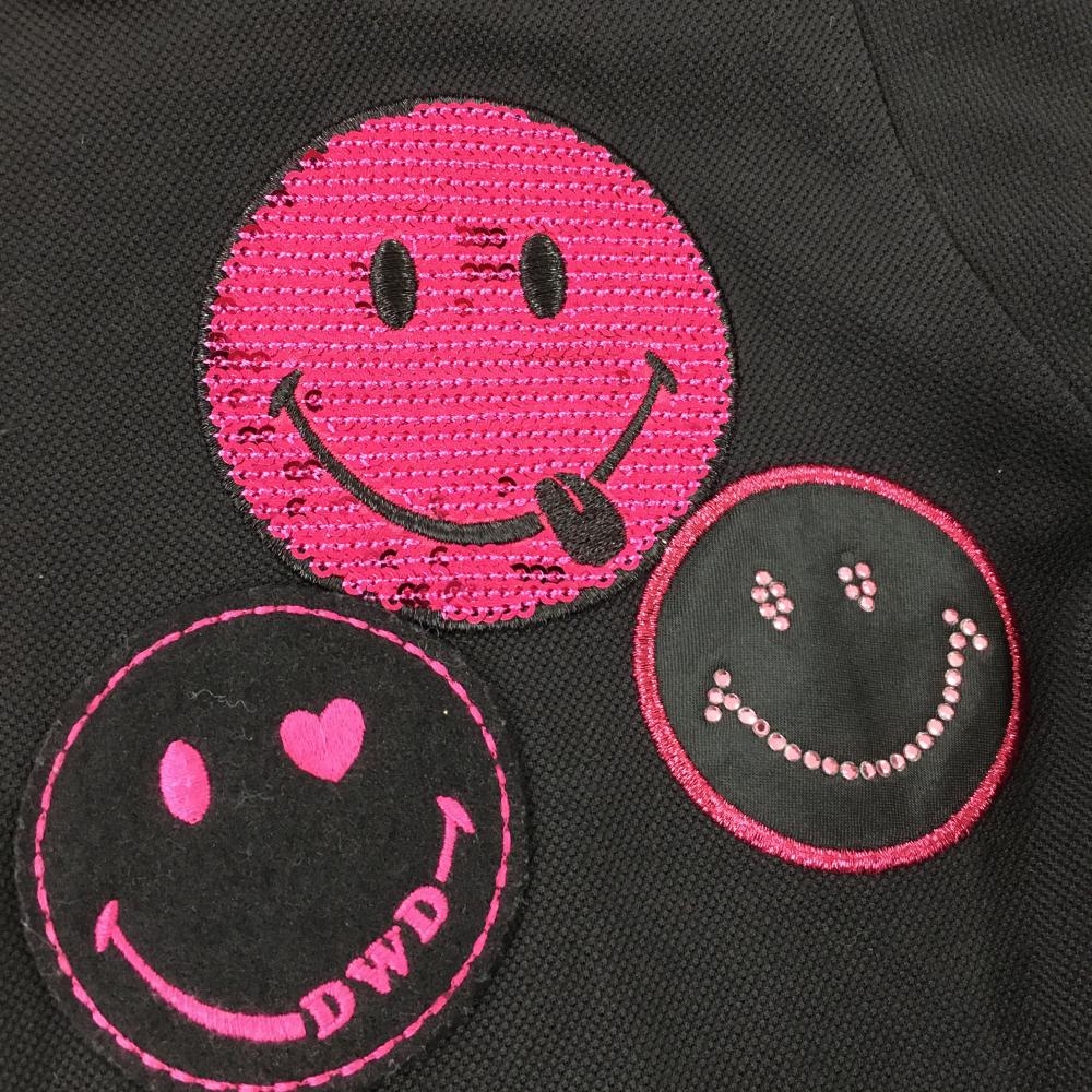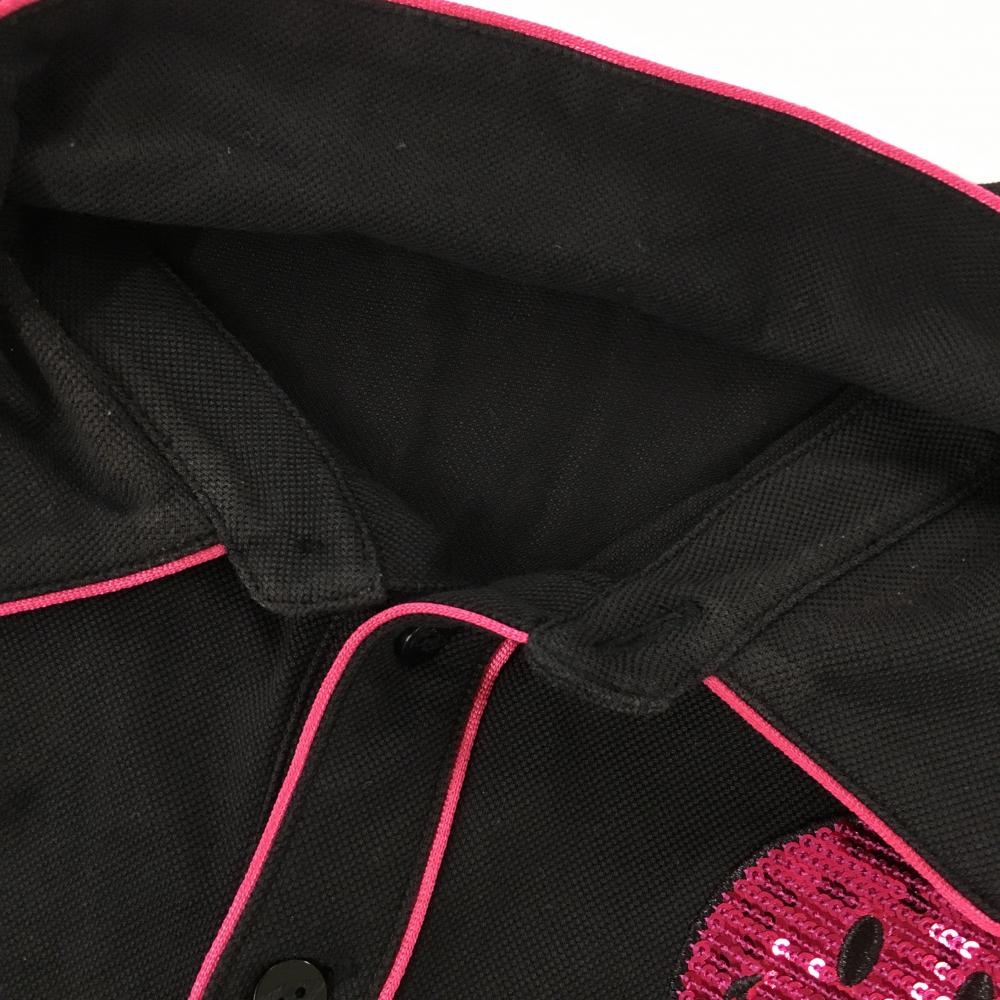ダンスウィズドラゴン 長袖ポロシャツ 黒×ピンク ニコちゃん スマイル レディース 2(M) ゴルフウェア Dance With Dragon