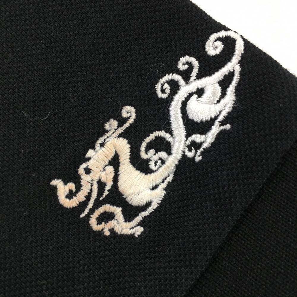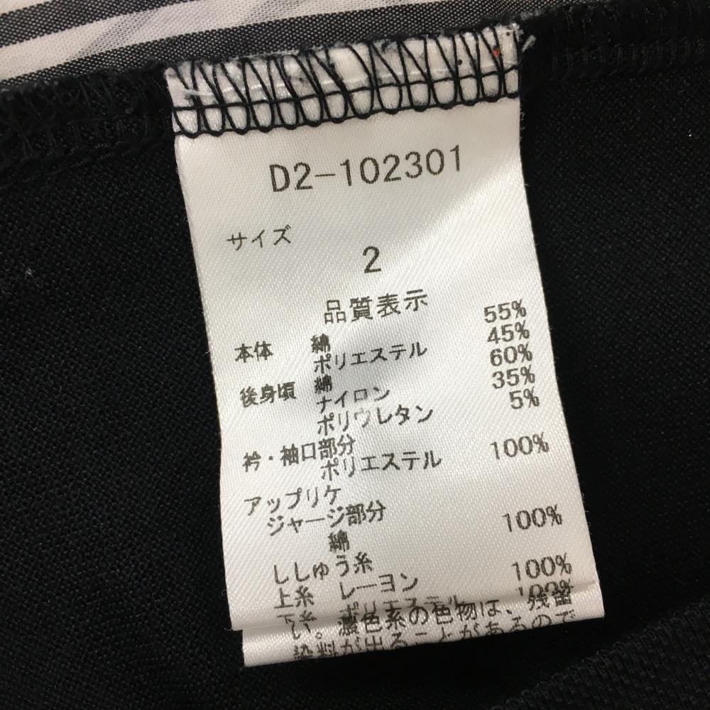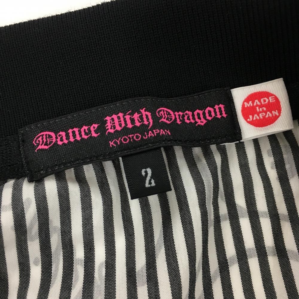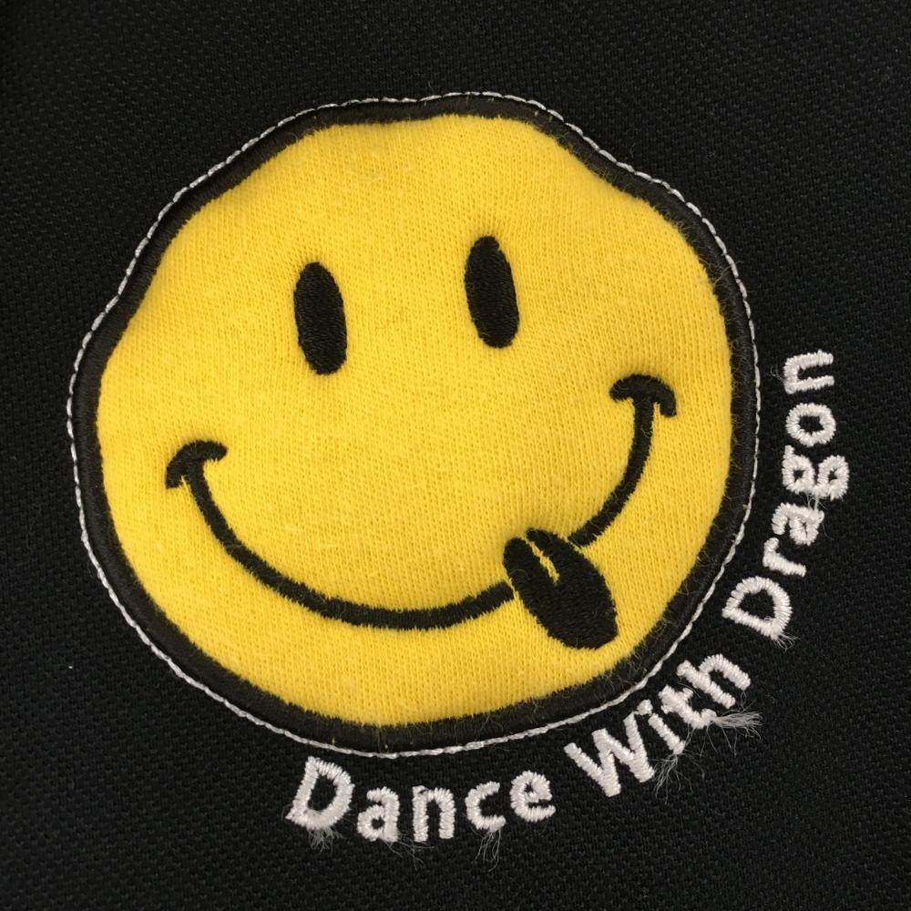 【美品】ダンスウィズドラゴン 半袖ポロシャツ 黒×グレー 背面ボーダー ニコちゃん総柄 レディース 2(M) ゴルフウェア Dance With Dragon