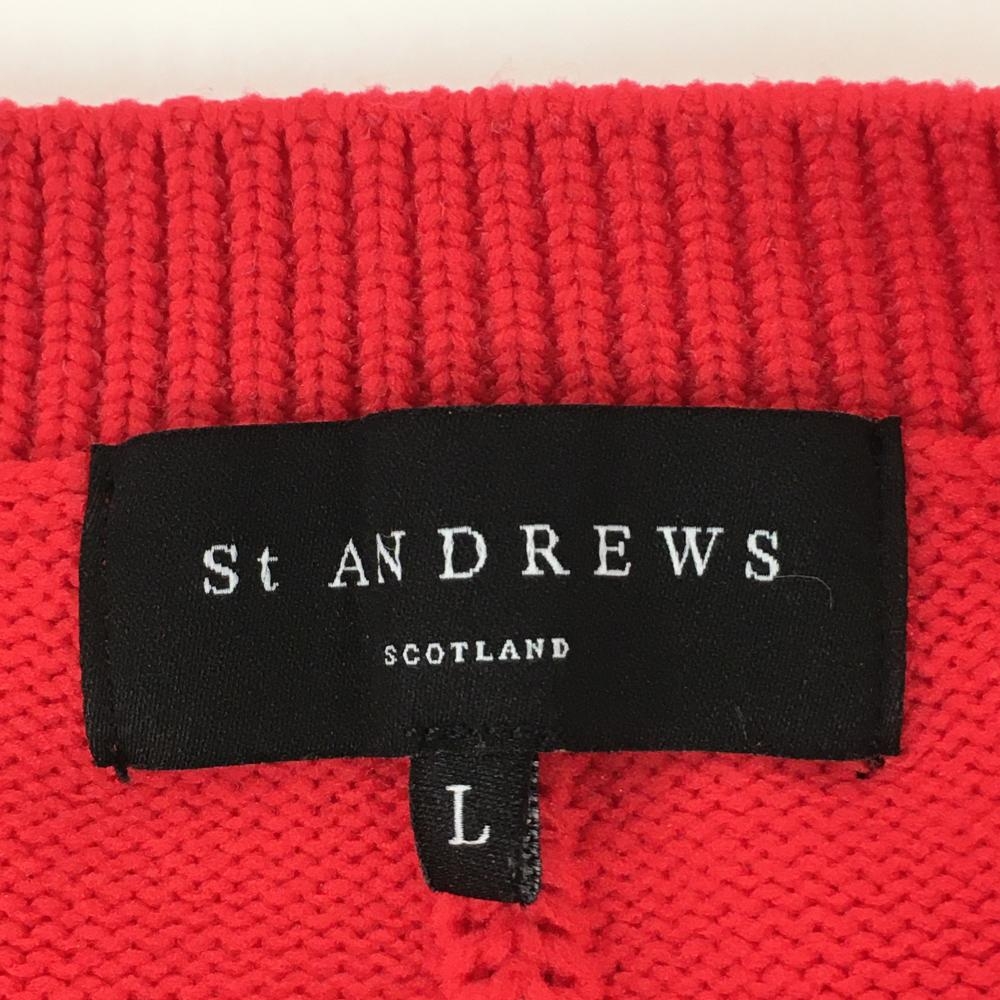 【超美品】セントアンドリュース ニットベスト レッド Vネック 一部透かし編み レディース L ゴルフウェア 2021年モデル St ANDREWS