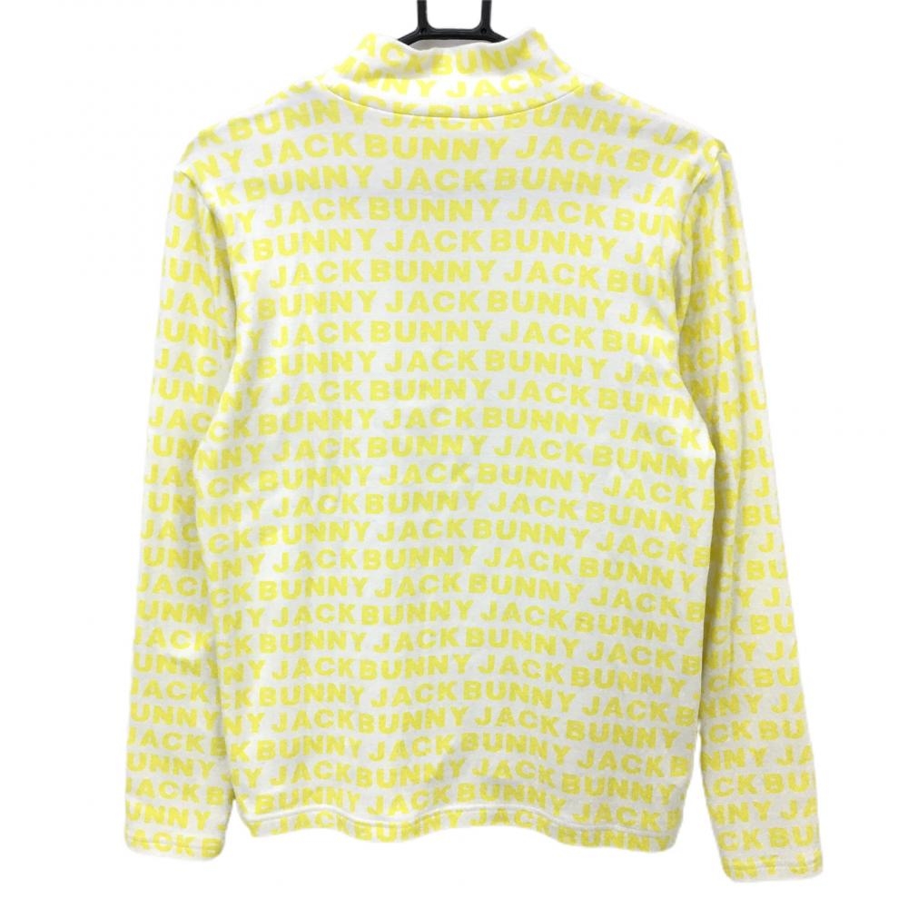 【美品】ジャックバニー 長袖ハイネックシャツ 白×イエロー ロゴ総柄 メンズ 3(S) ゴルフウェア 2021年モデル Jack Bunny