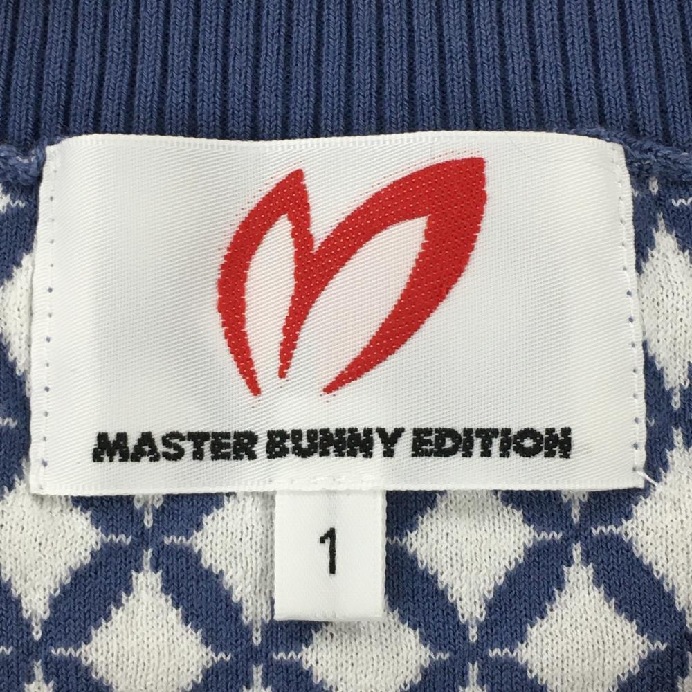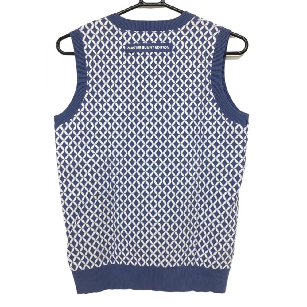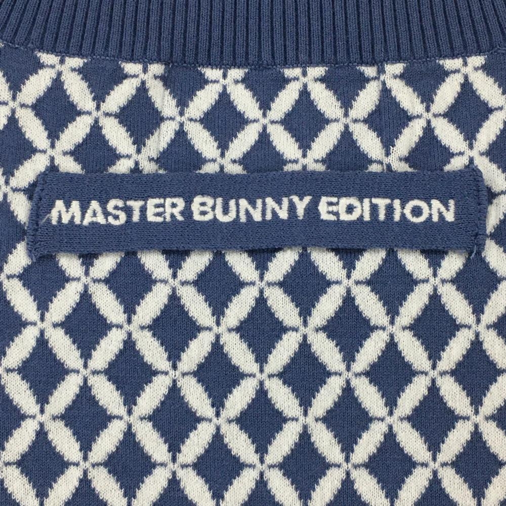 【美品】マスターバニー ニットベスト ライトブルー×白 総柄 Vネック 裾汚れ小 レディース 1 ゴルフウェア MASTER BUNNY EDITION
