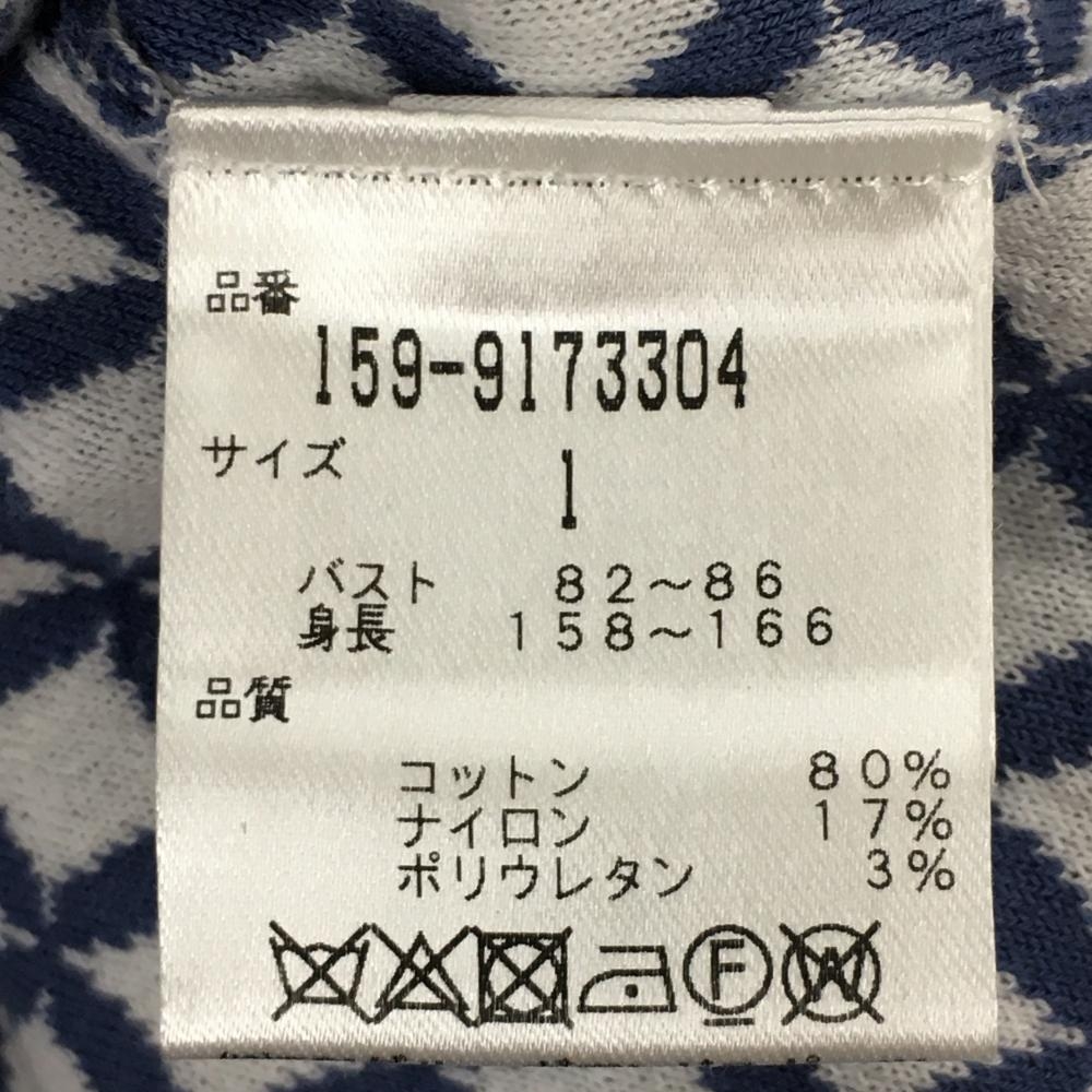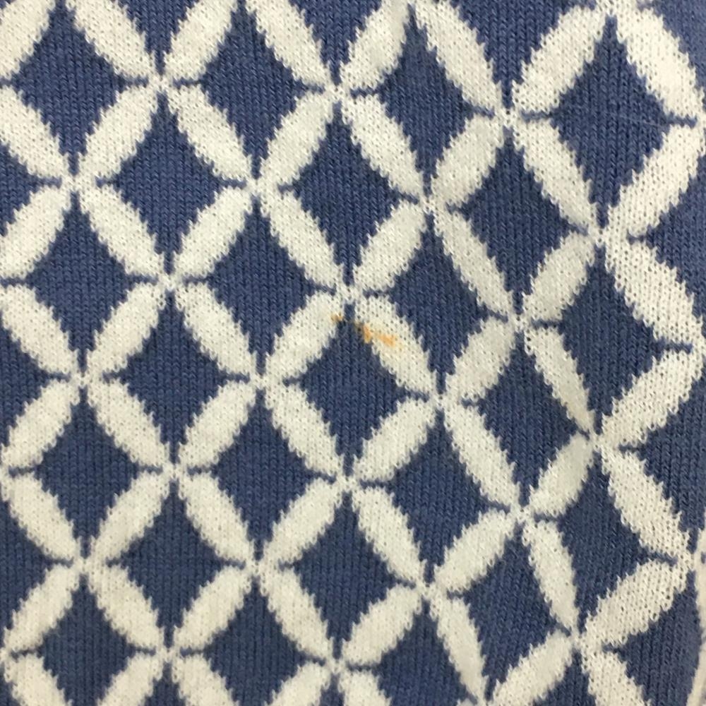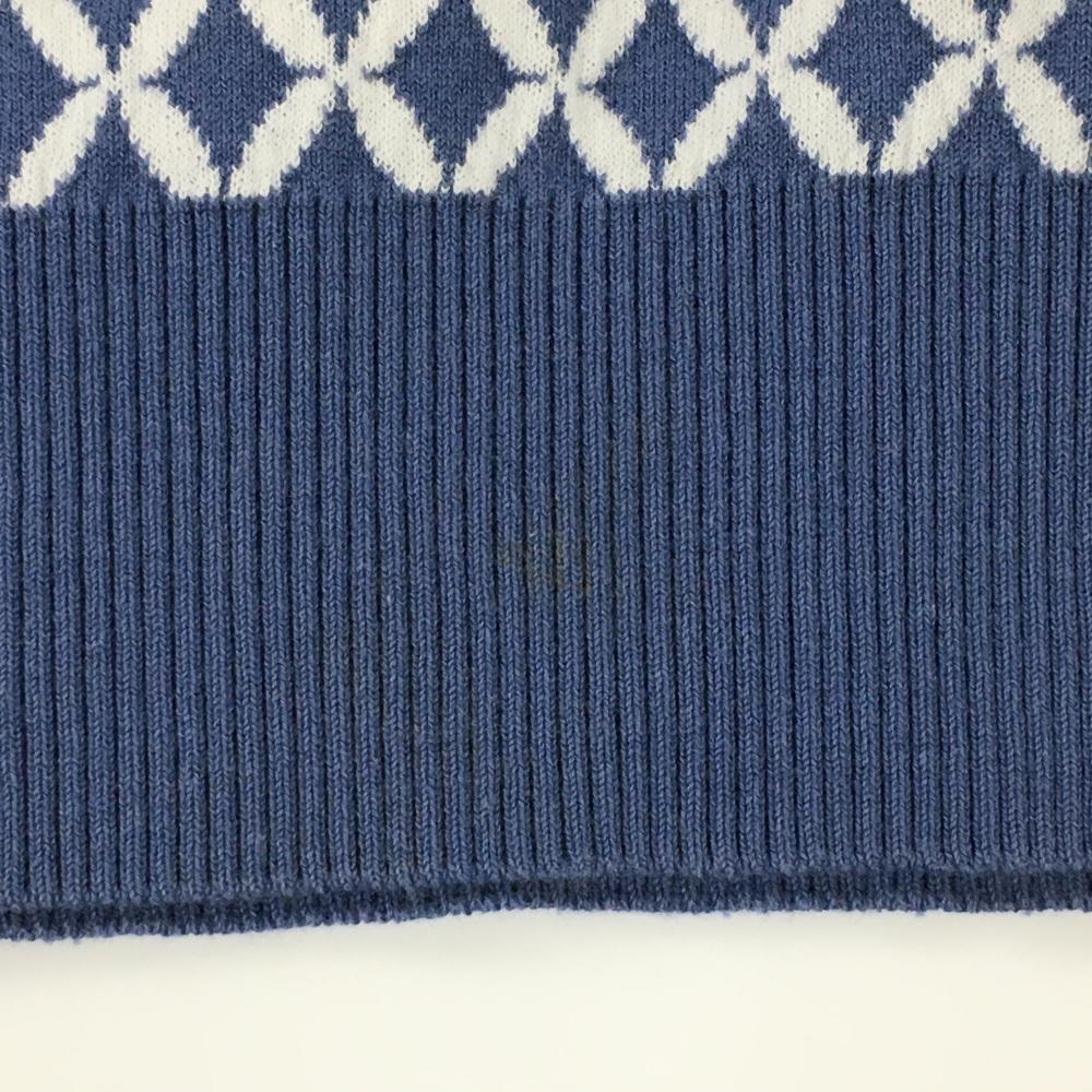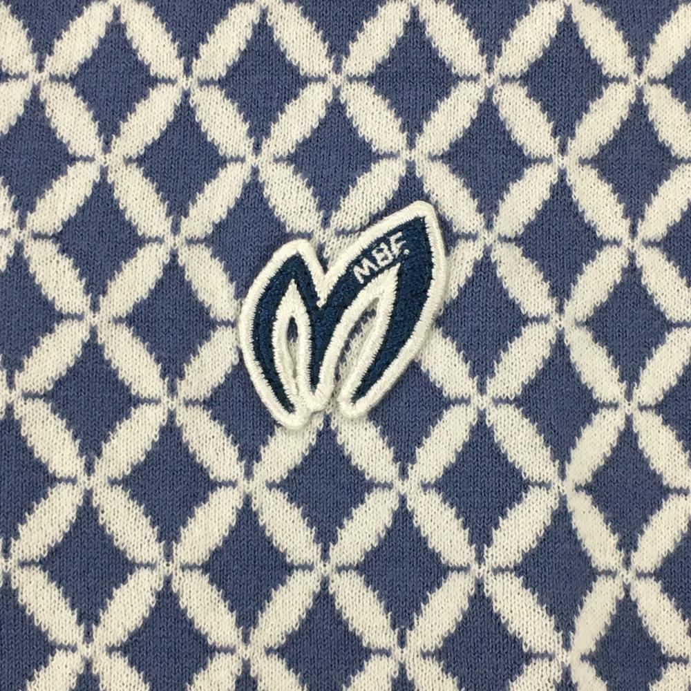 【美品】マスターバニー ニットベスト ライトブルー×白 総柄 Vネック 裾汚れ小 レディース 1 ゴルフウェア MASTER BUNNY EDITION