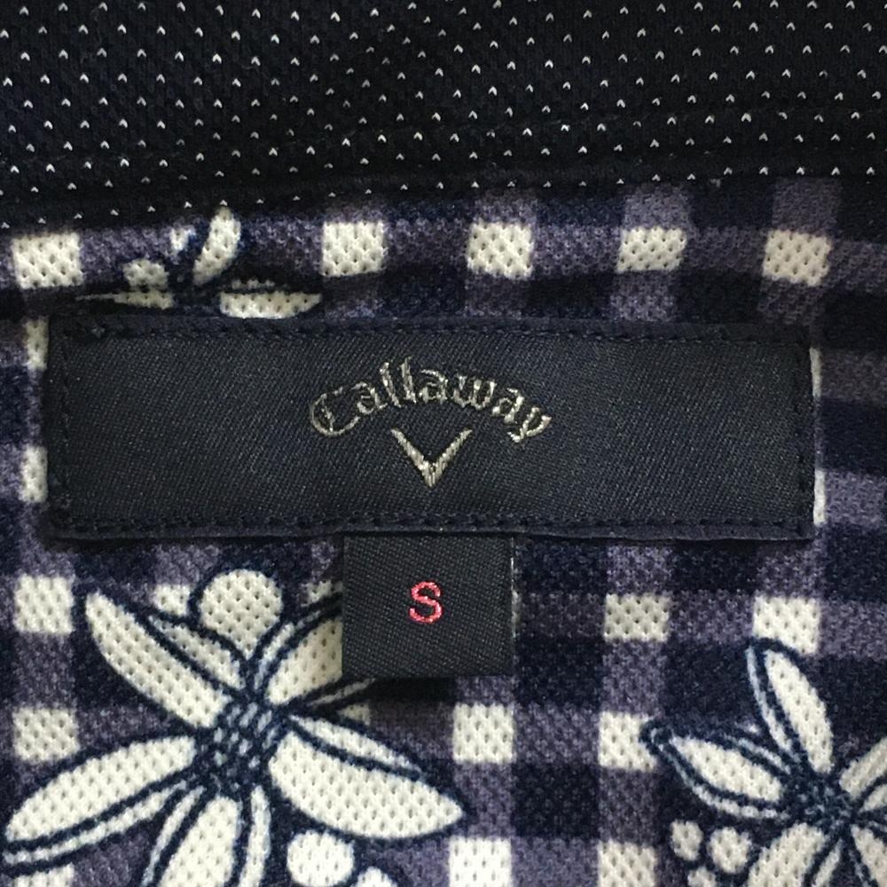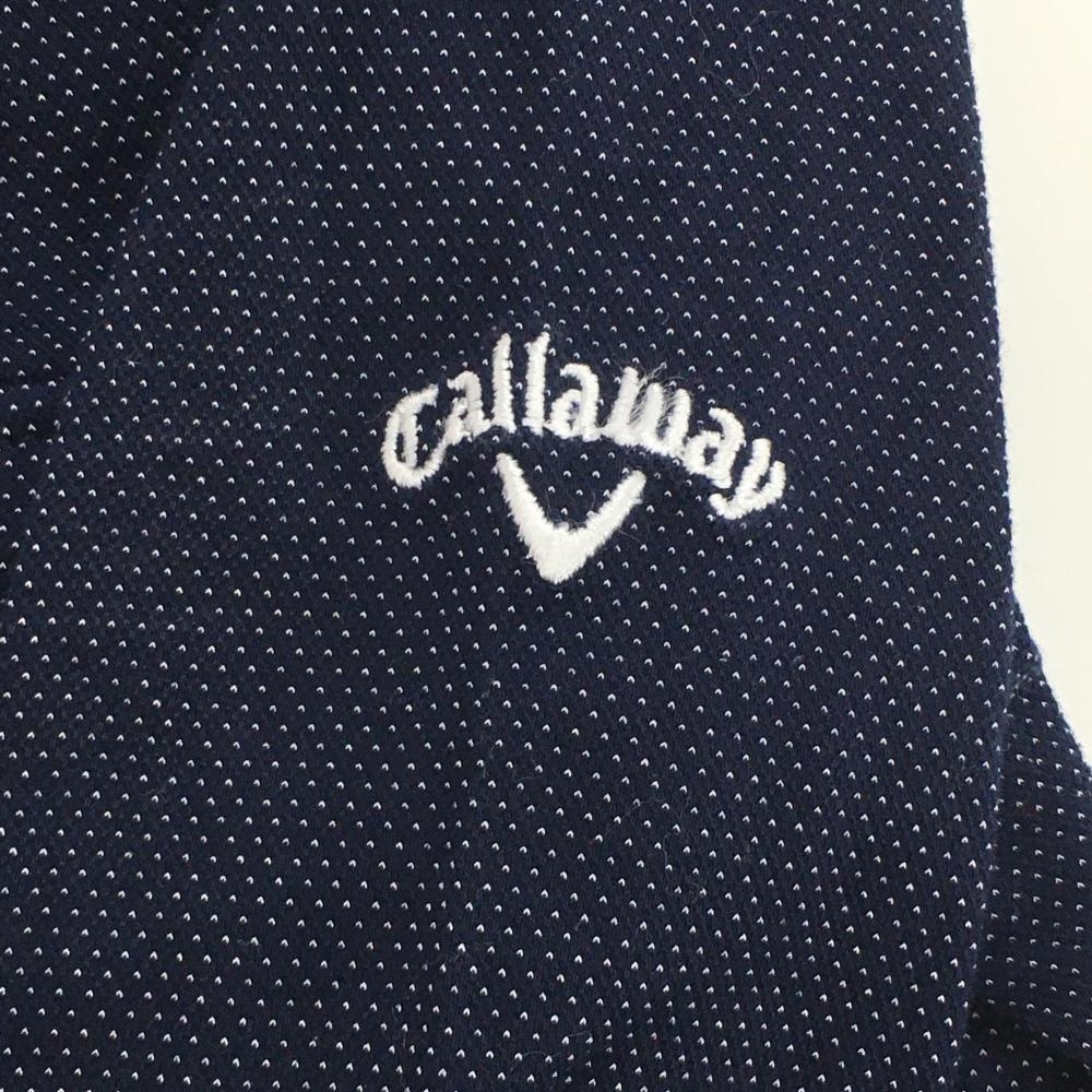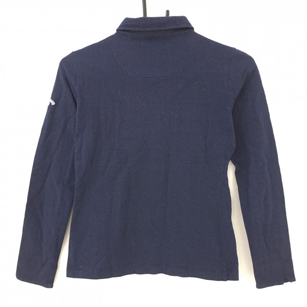 【美品】キャロウェイ 長袖ポロシャツ ネイビー×白 ピンドット 胸ポケット レディース S ゴルフウェア Callaway