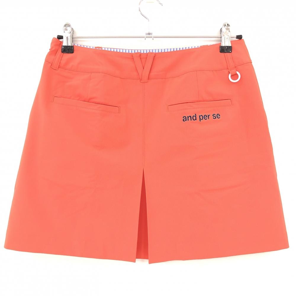【超美品】アンパスィ スカート オレンジ ラインストーンロゴ 裾プリーツ レディース L ゴルフウェア and per se