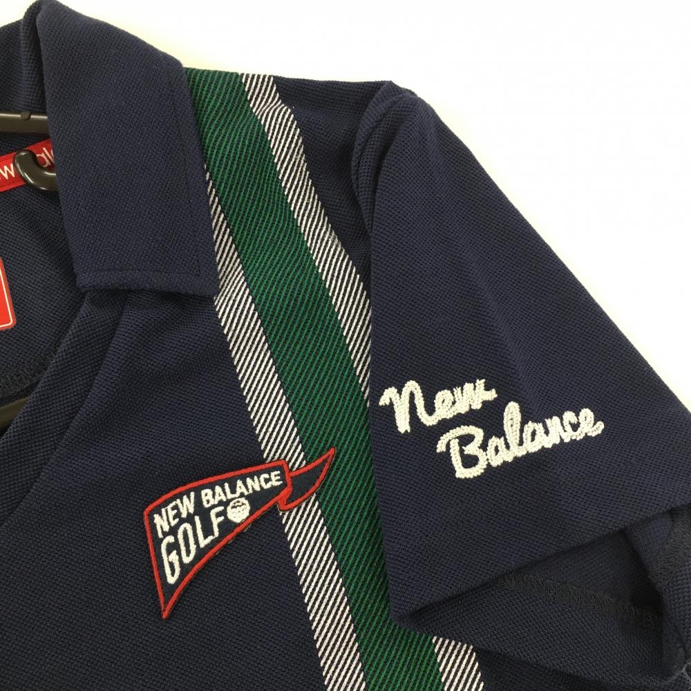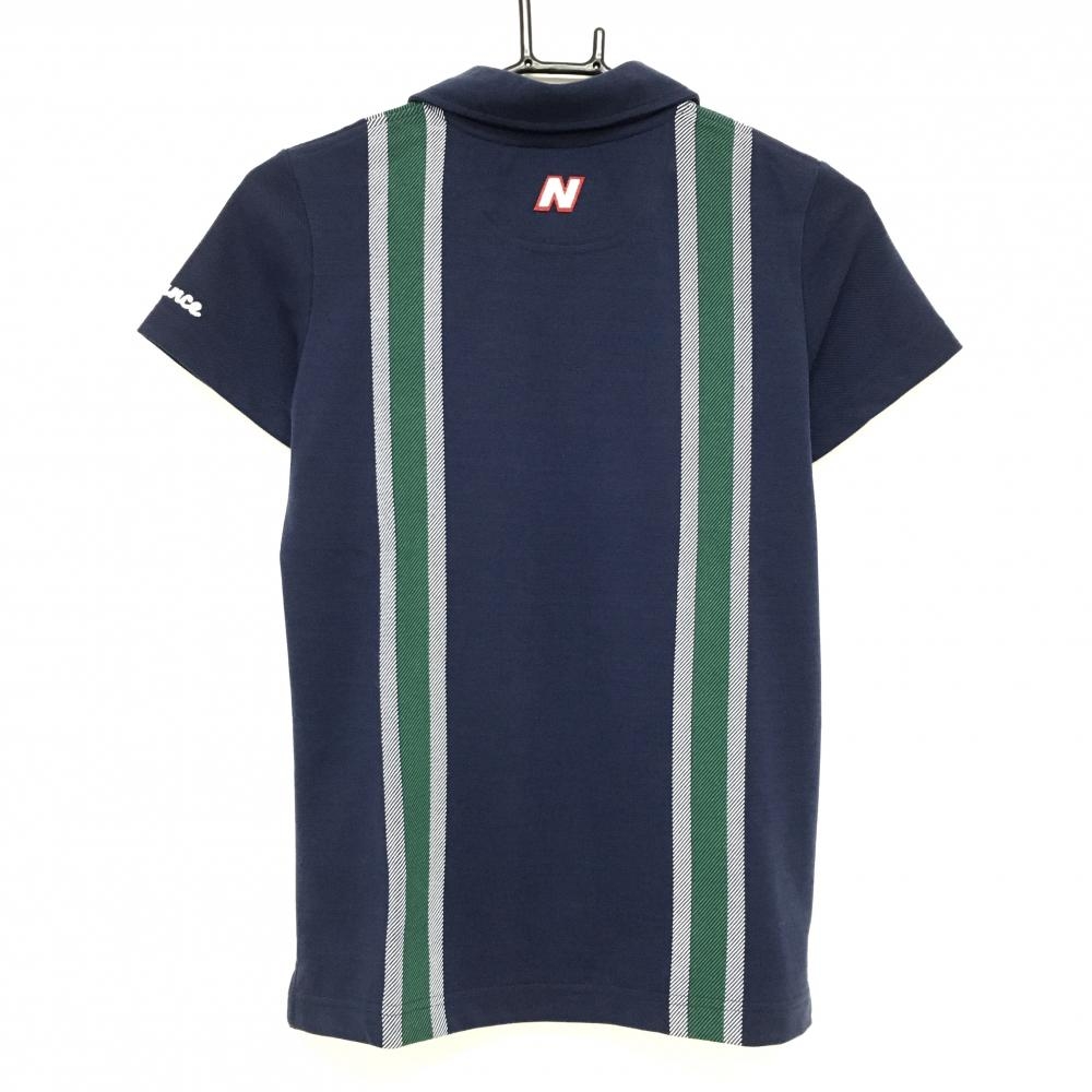 【超美品】ニューバランス 半袖スキッパーシャツ ネイビー×グリーン 一部ストライプ レディース 0(S) ゴルフウェア New Balance