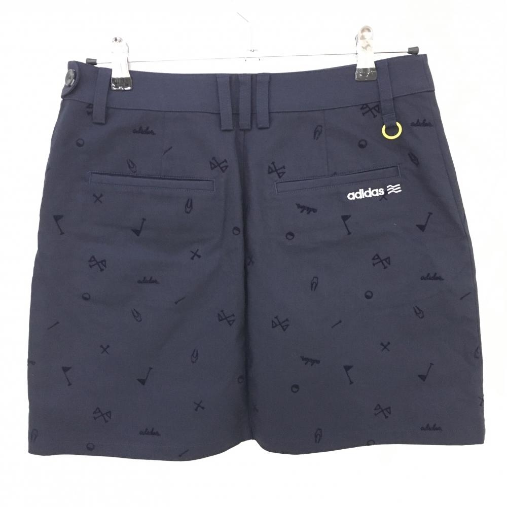 【超美品】アディダス スカート ネイビー 総柄 ロゴ刺しゅう レディース L/G ゴルフウェア adidas