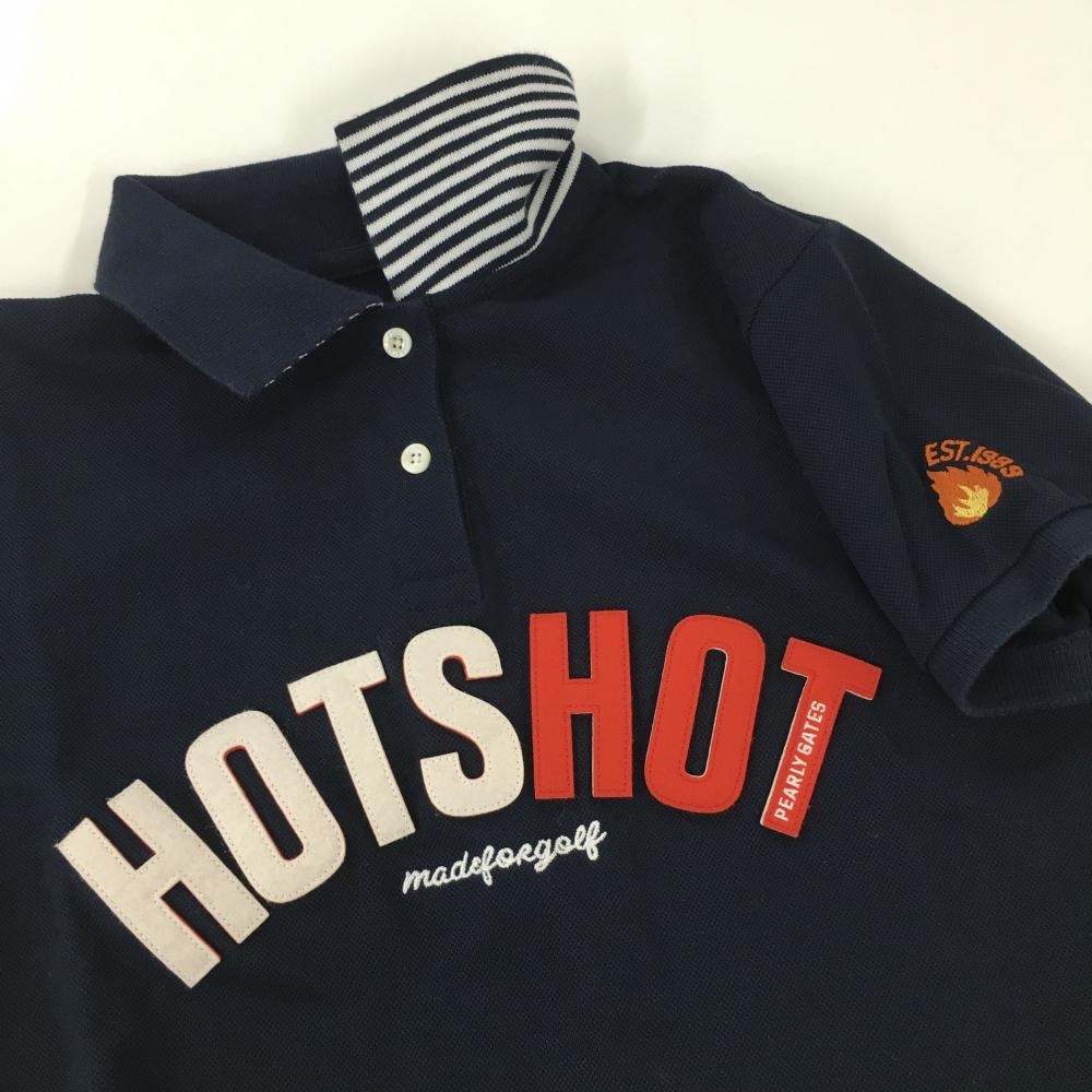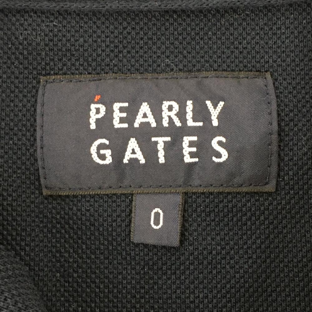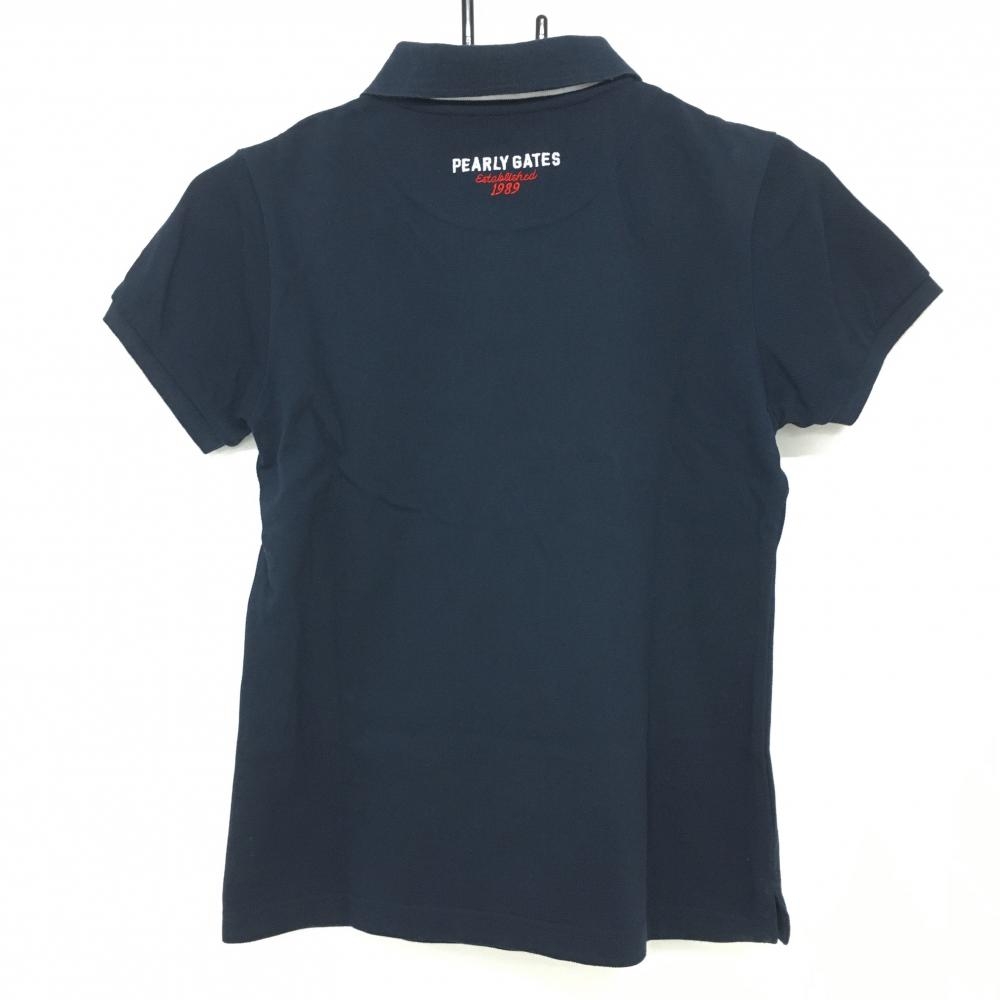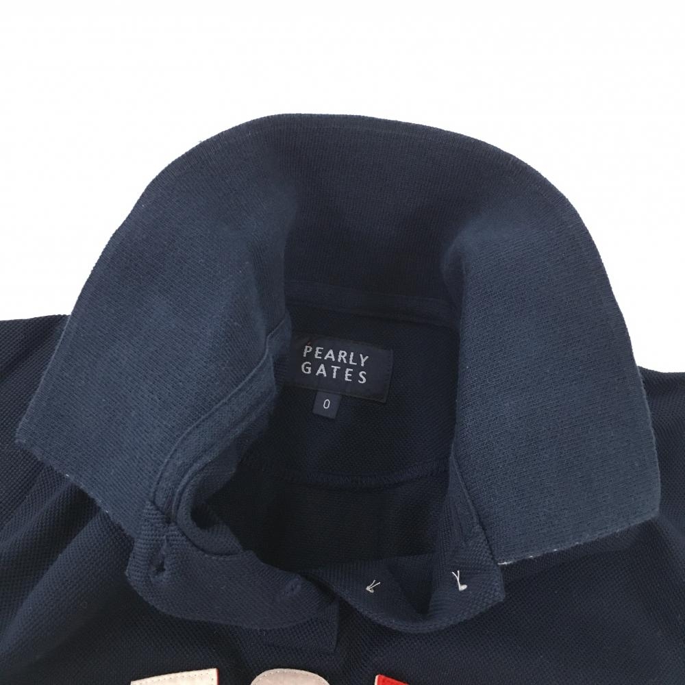 【美品】パーリーゲイツ 半袖ポロシャツ ネイビー×白 襟裏ボーダー フェルトワッペン レディース 0(S) ゴルフウェア PEARLY GATES