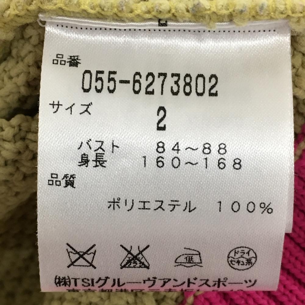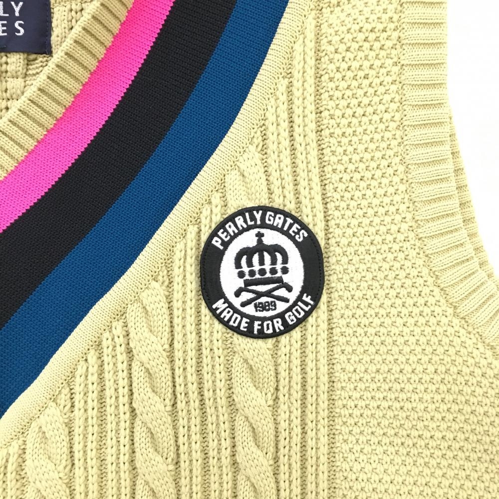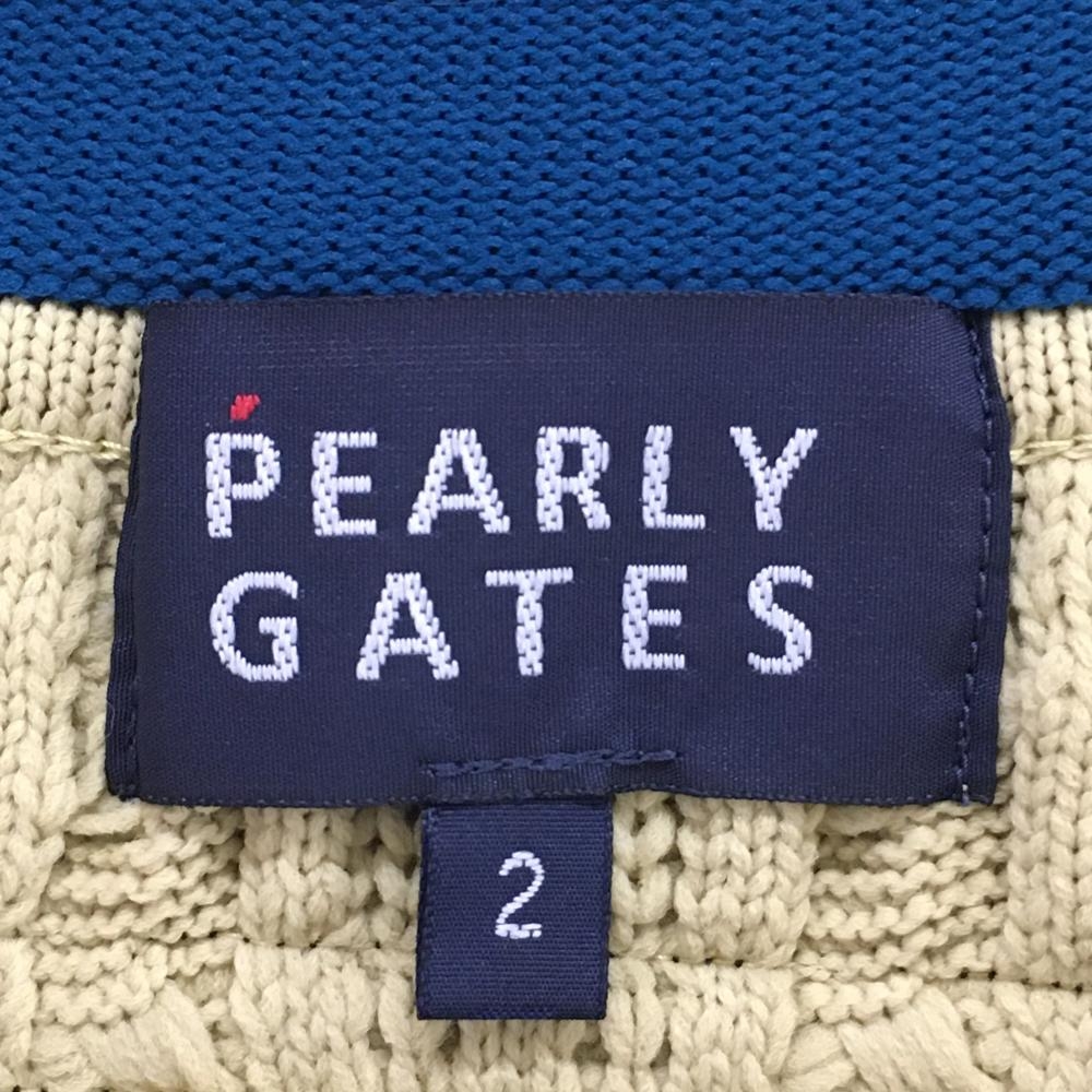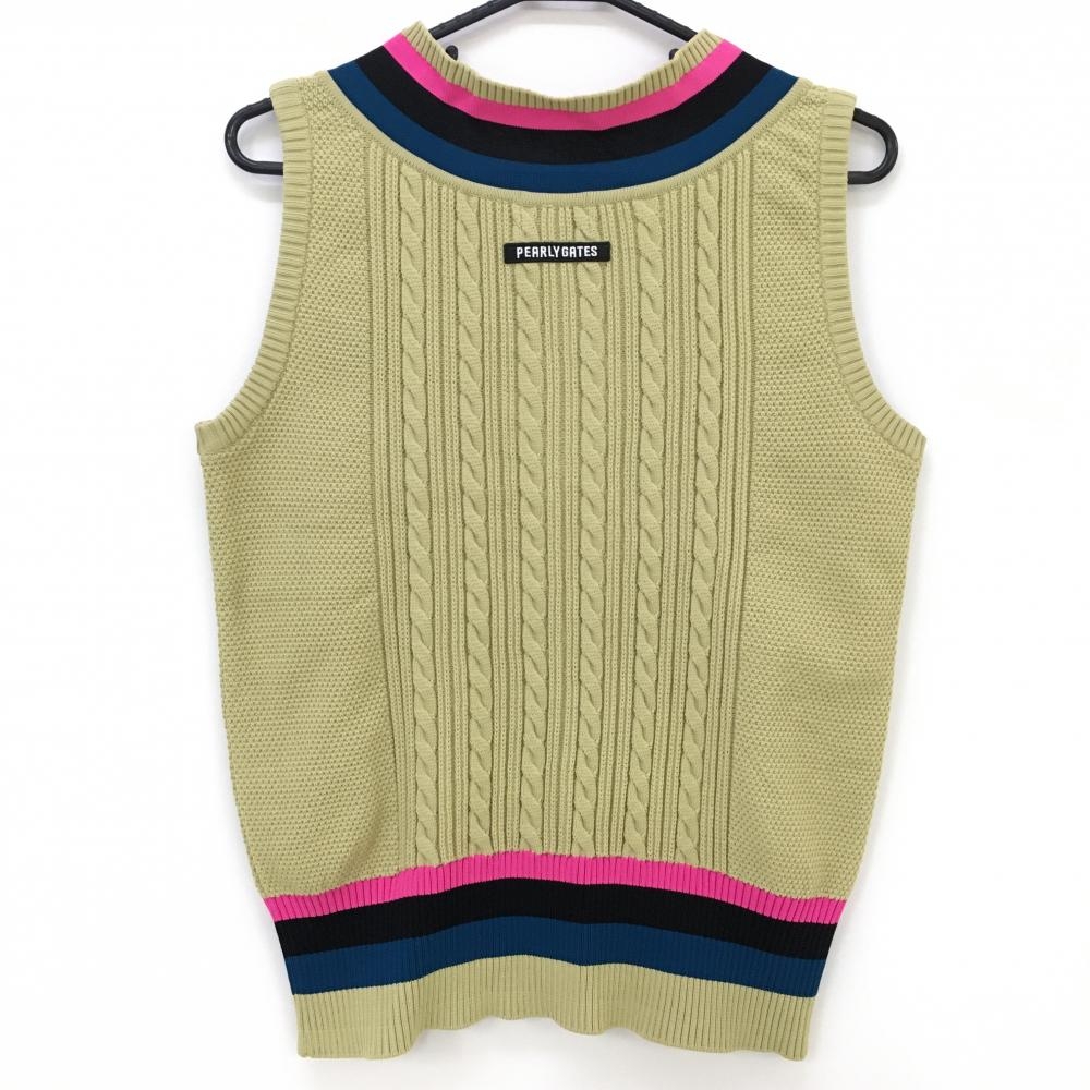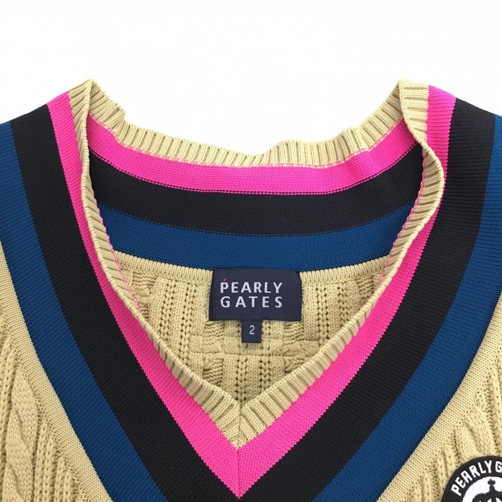 【超美品】パーリーゲイツ ニットベスト ベージュ×ピンク ケーブル編み Vネック レディース 2(L) ゴルフウェア PEARLY GATES