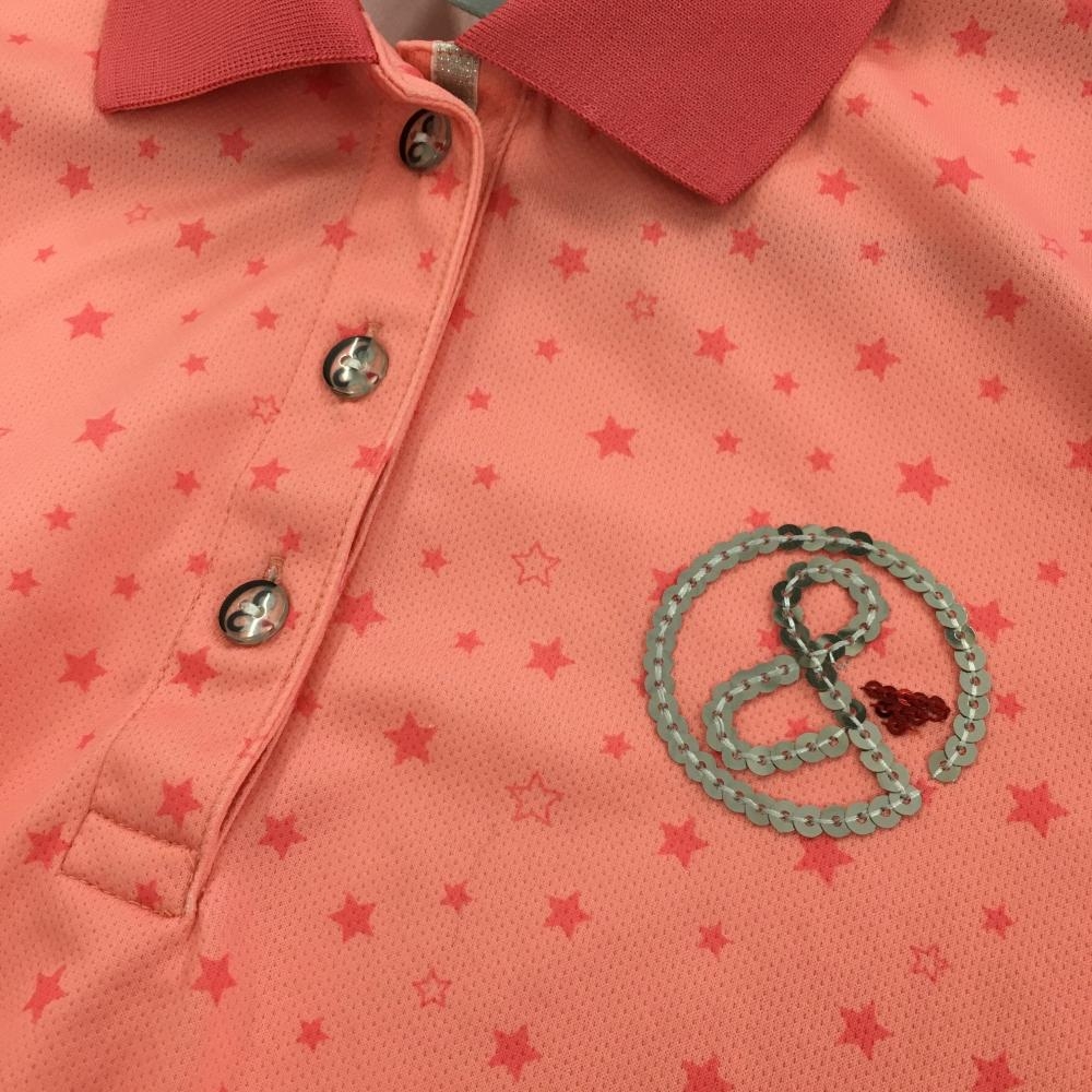 アンパスィ 半袖ポロシャツ ピンク 星柄 スパンコールロゴ レディース M ゴルフウェア and per se
