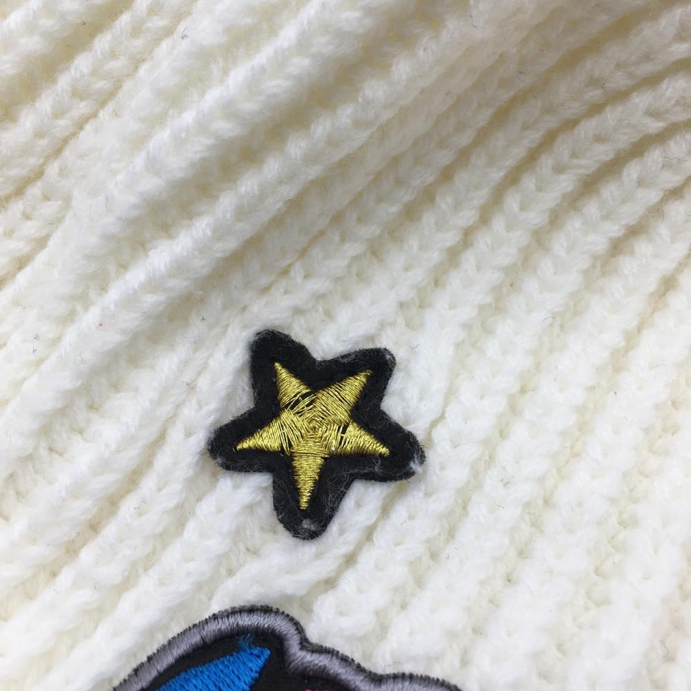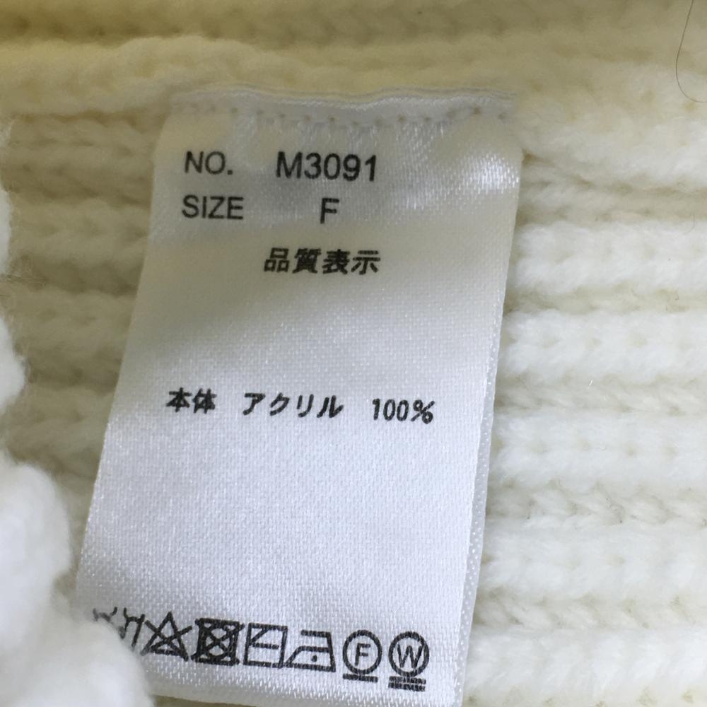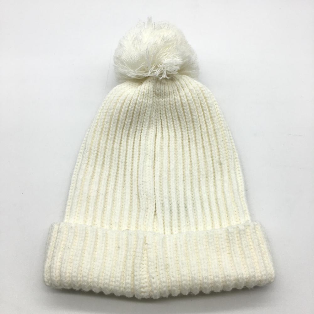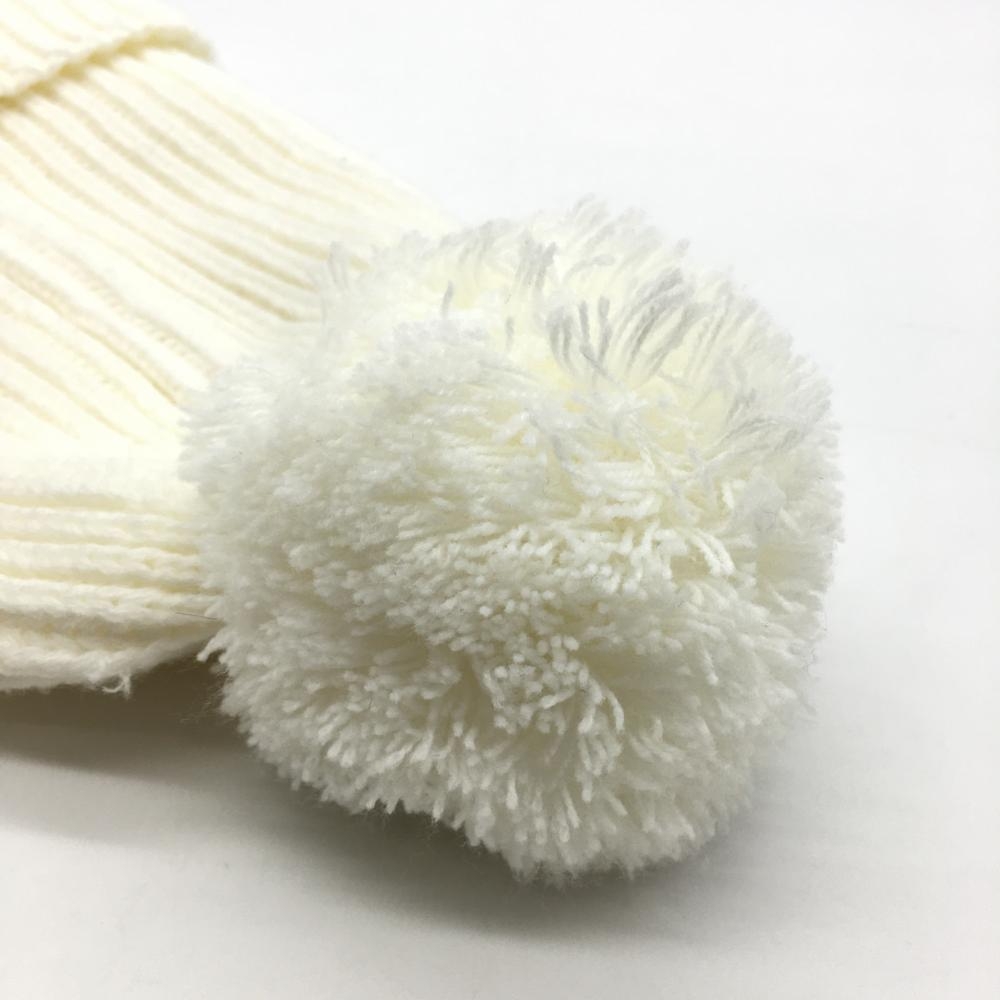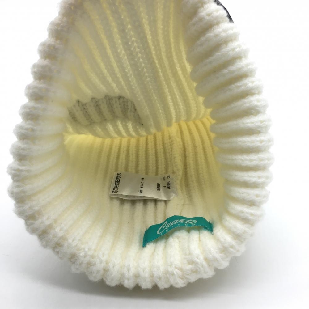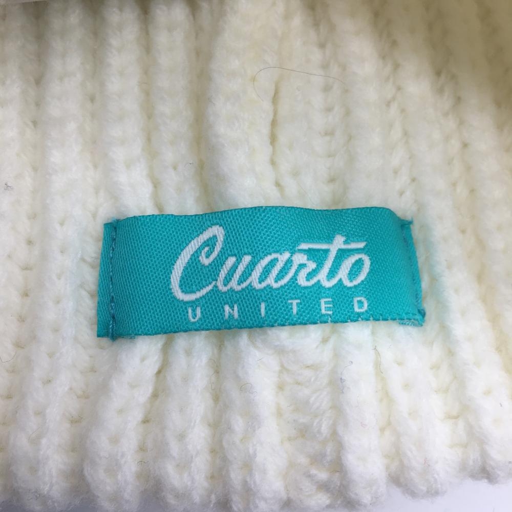 【美品】クアルトユナイテッド ニット帽 白 ワッペン ボンボン付き アクリル100% F ゴルフウェア CUARTO UNITED