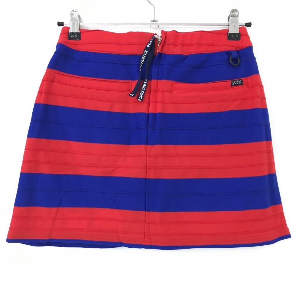 【超美品】パーリーゲイツ スカート レッド×ブルー ボーダー コットン混 レディース 0(S) ゴルフウェア PEARLY GATES