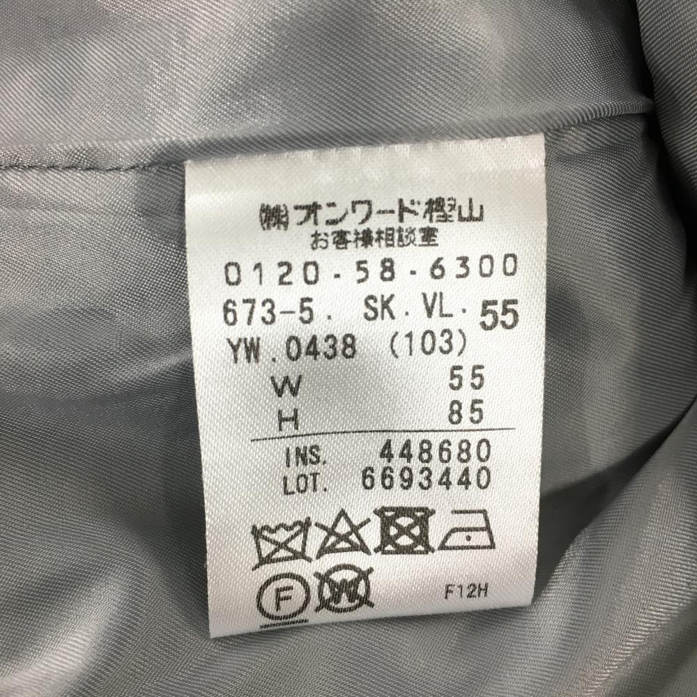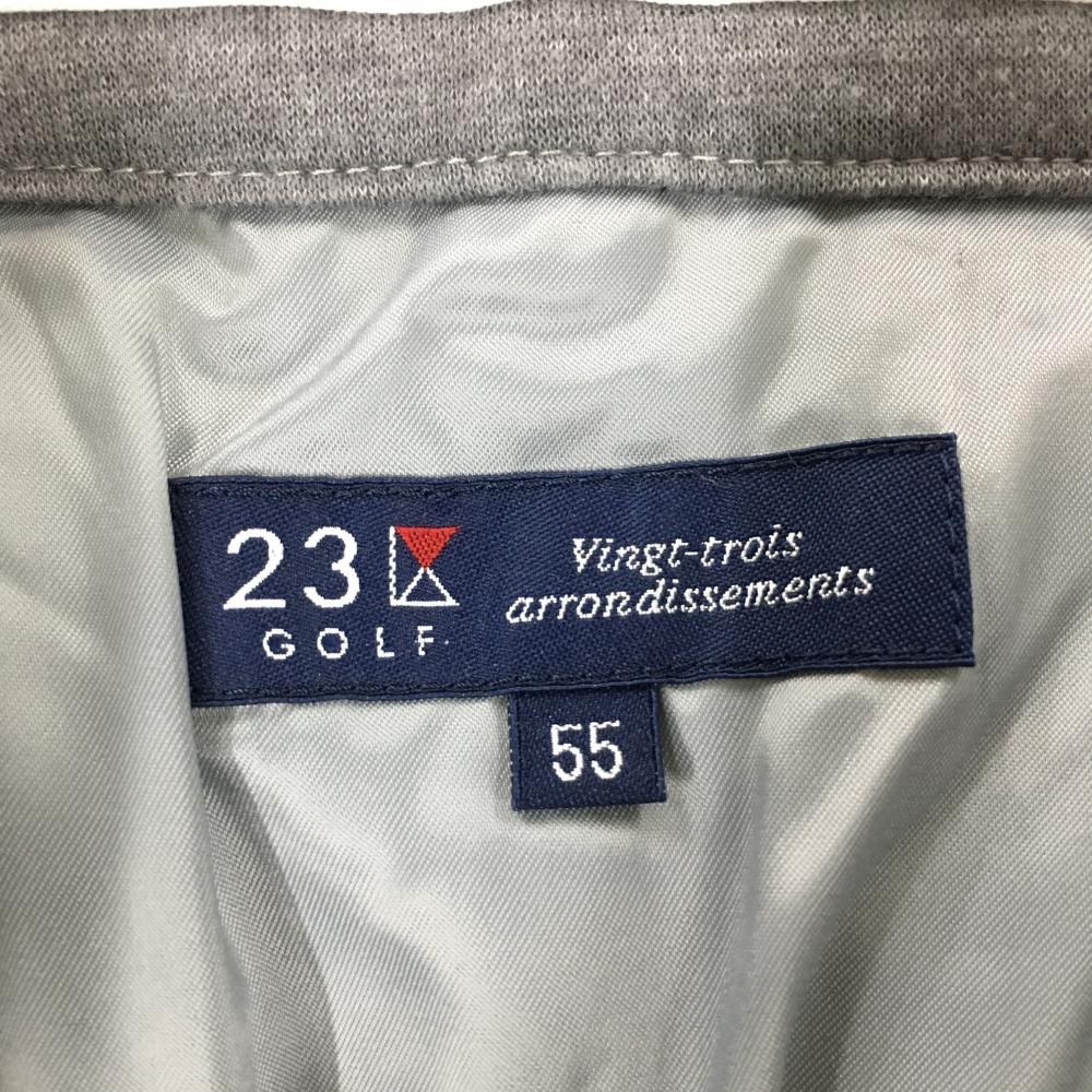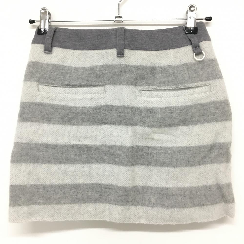 【美品】23区ゴルフ ウールスカート グレー×白 ボーダー ロゴ刺しゅう 表起毛 裏地付き レディース 55 ゴルフウェア 23区
