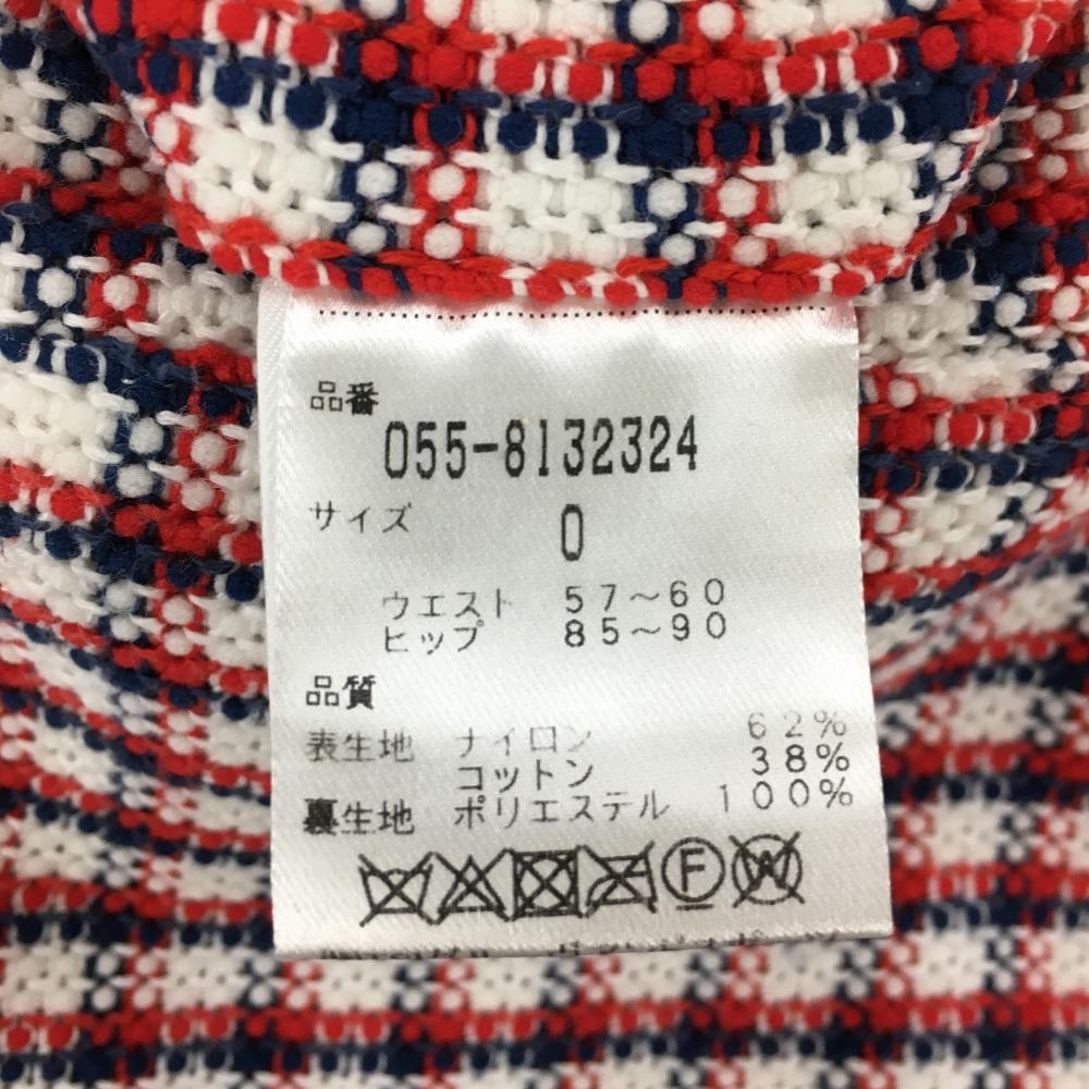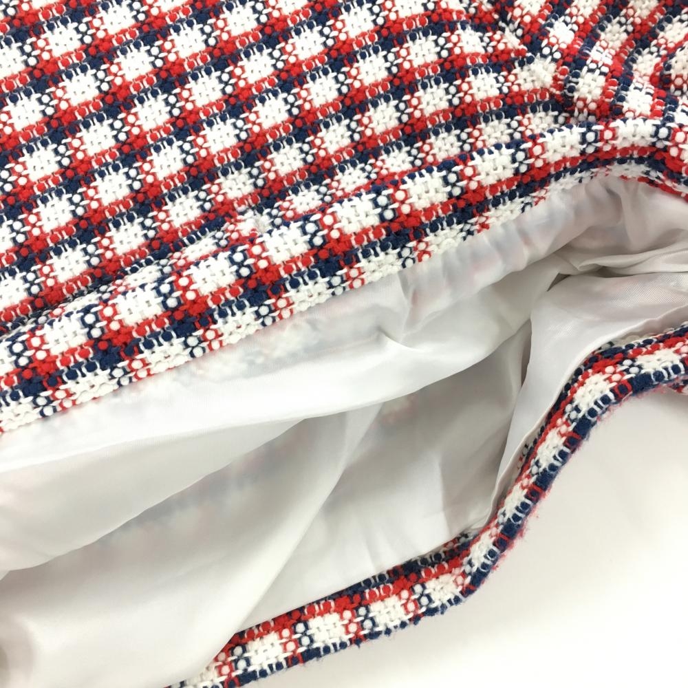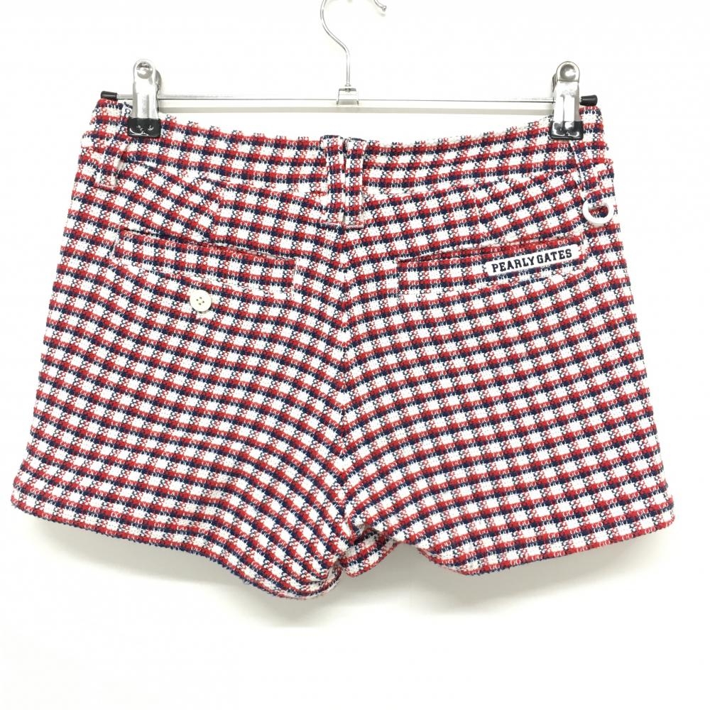 【超美品】パーリーゲイツ ショートパンツ 白×レッド×ネイビー チェック ニット 裏地付き レディース 0(S) ゴルフウェア PEARLY GATES
