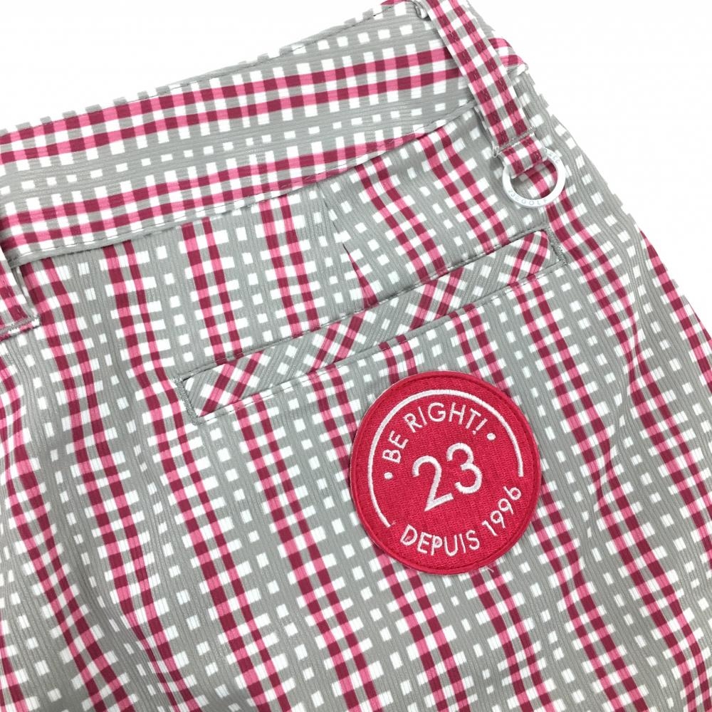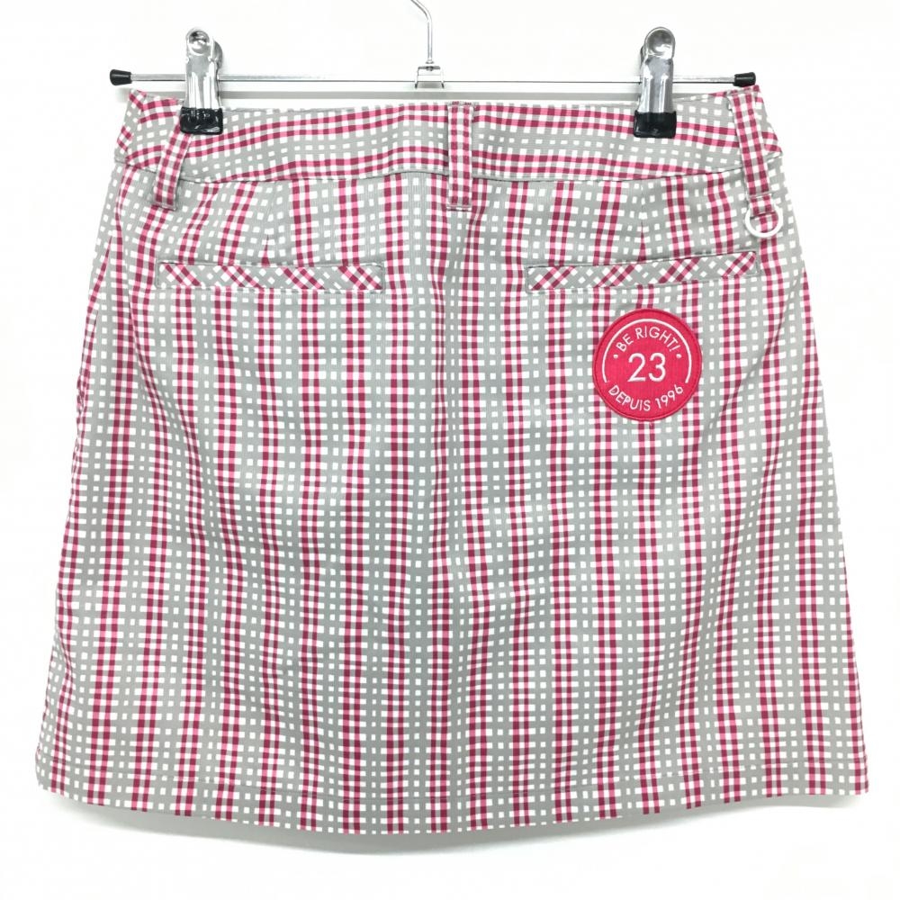 【超美品】23区ゴルフ タックスカート グレー×ピンク 総柄 ストライプ レディース 61 ゴルフウェア 23区