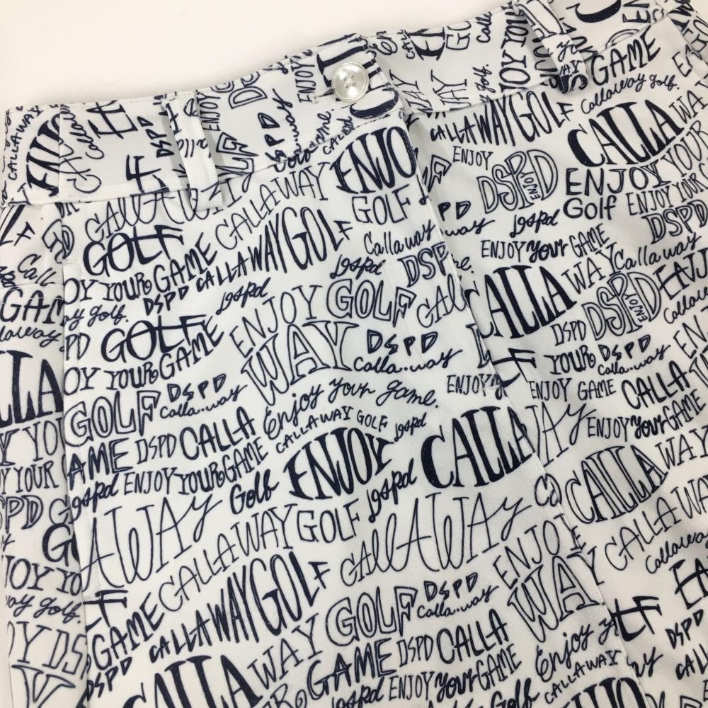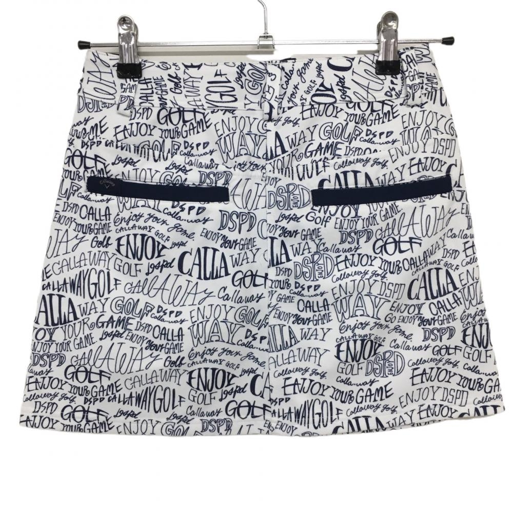 【美品】キャロウェイ スカート 白×ネイビー 英字総柄 バックロゴ レディース SS ゴルフウェア Callaway