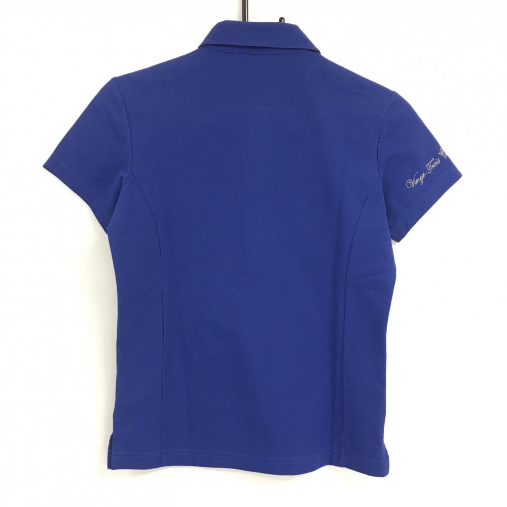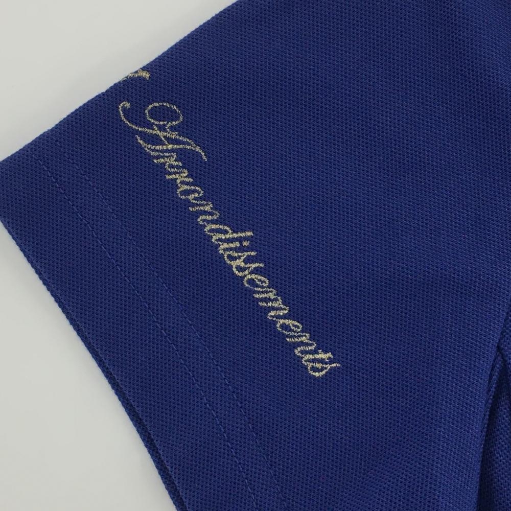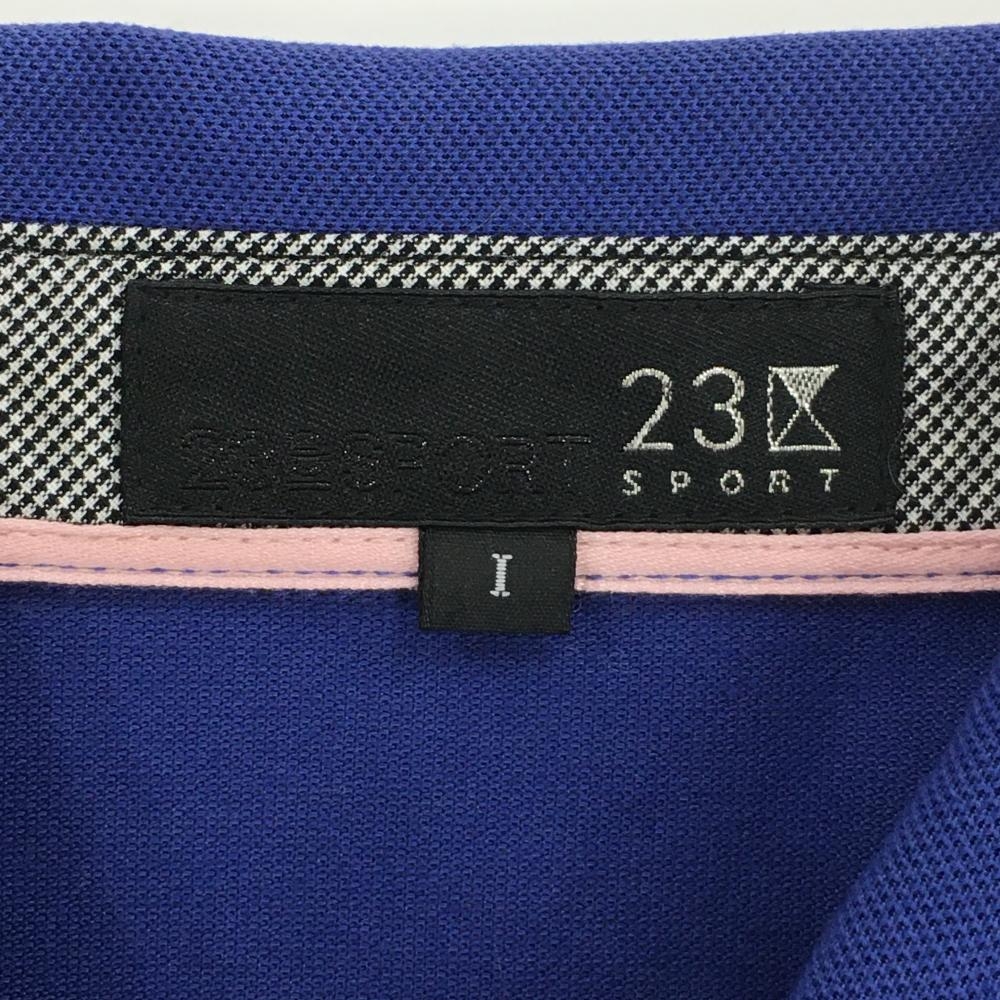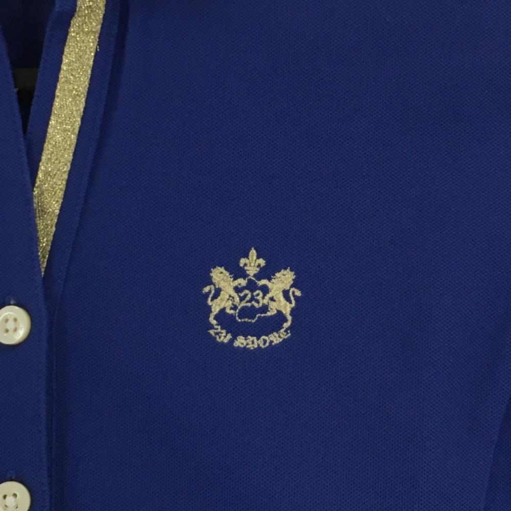【美品】23区スポーツ 半袖ポロシャツ ブルー×ゴールド ロゴ刺しゅう スキッパー レディース I(M) ゴルフウェア 23区