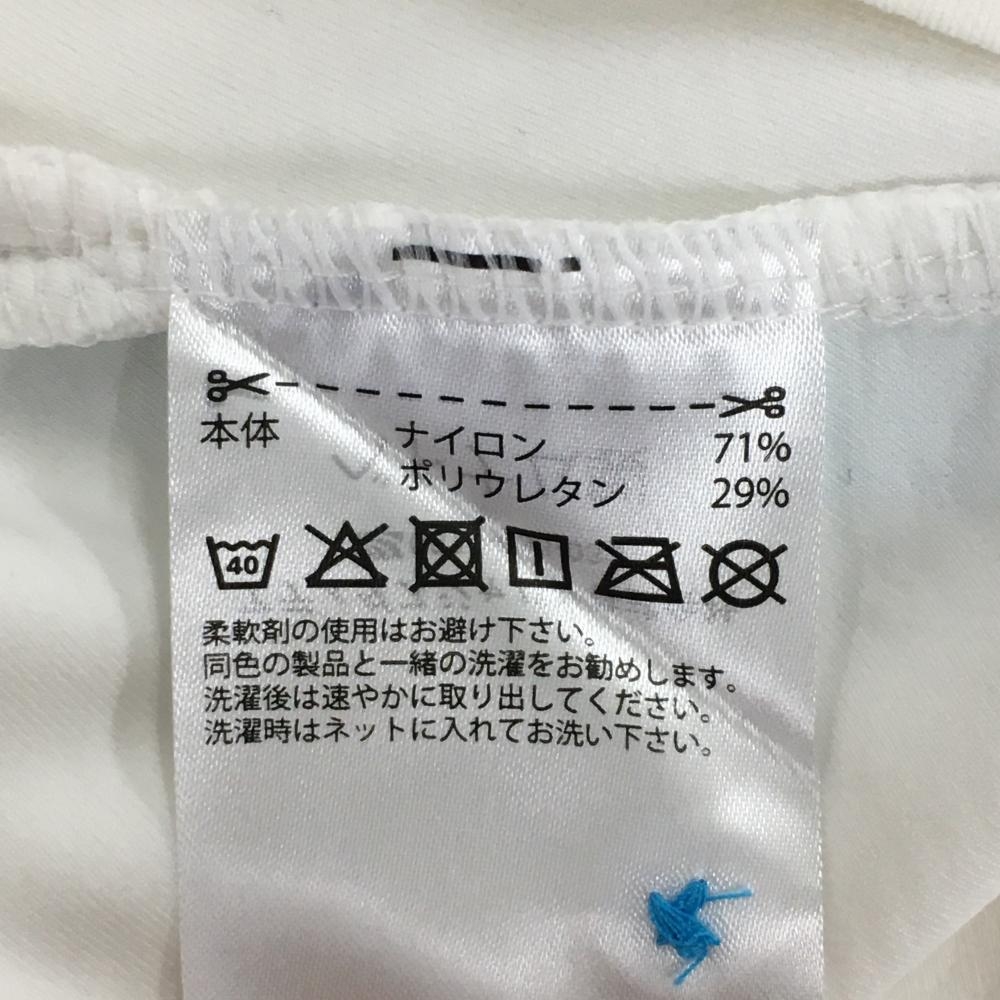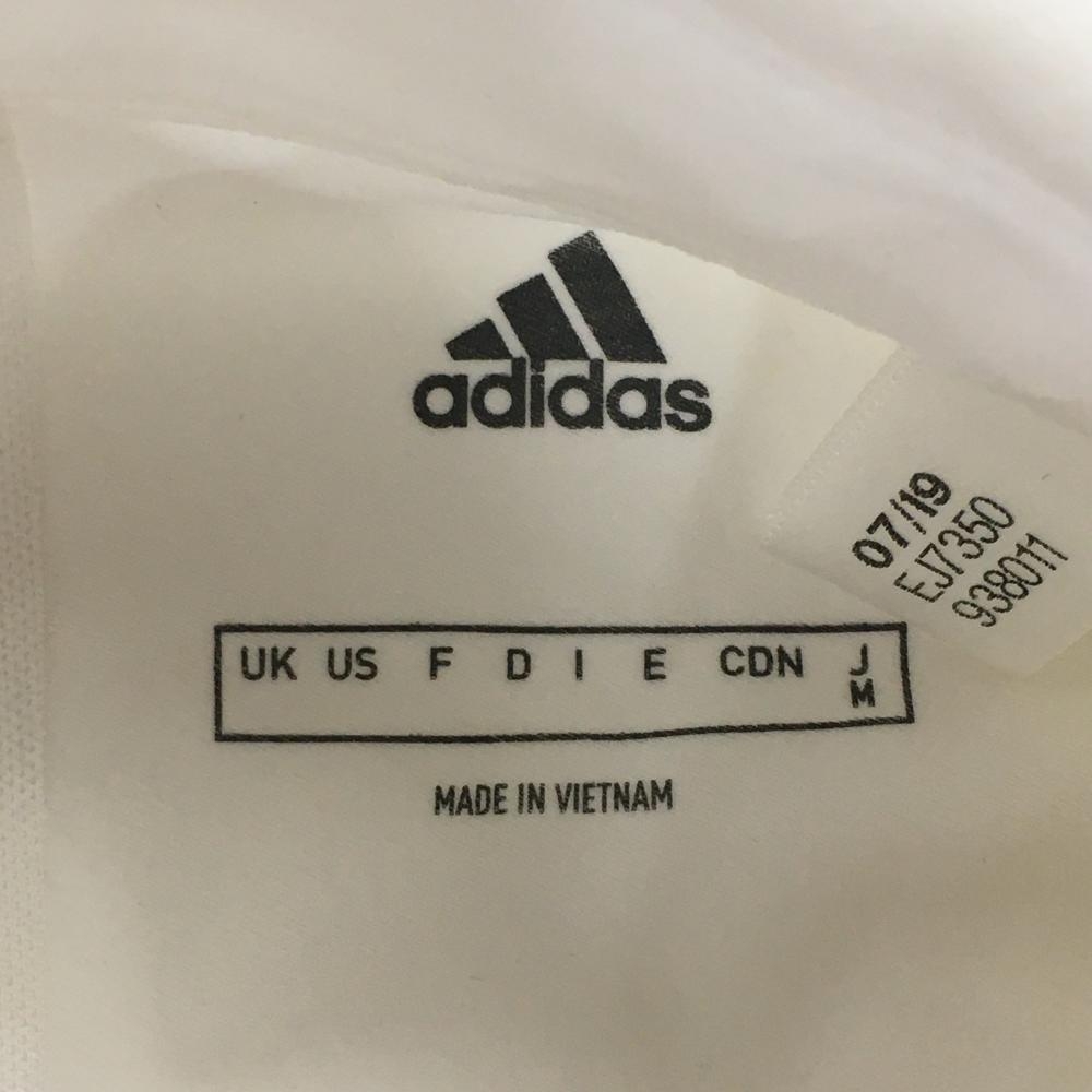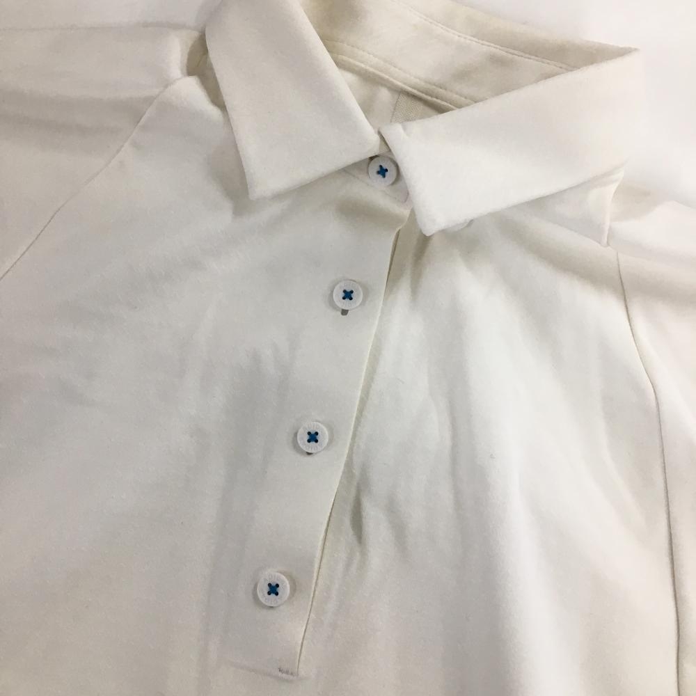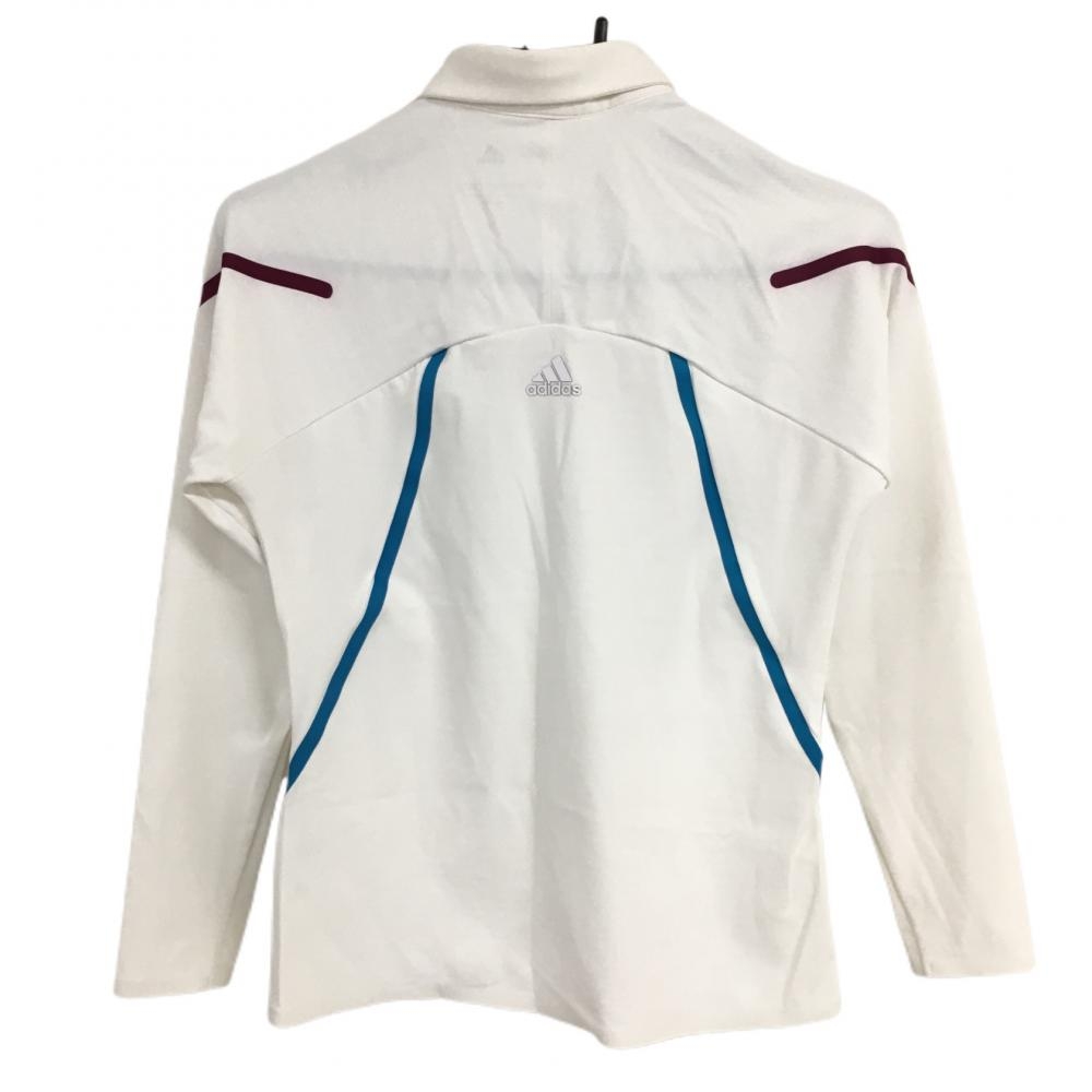 アディダス 長袖ポロシャツ 白×ブルー 地模様 袖、裾ライン ボタンダウン レディース M ゴルフウェア adidas