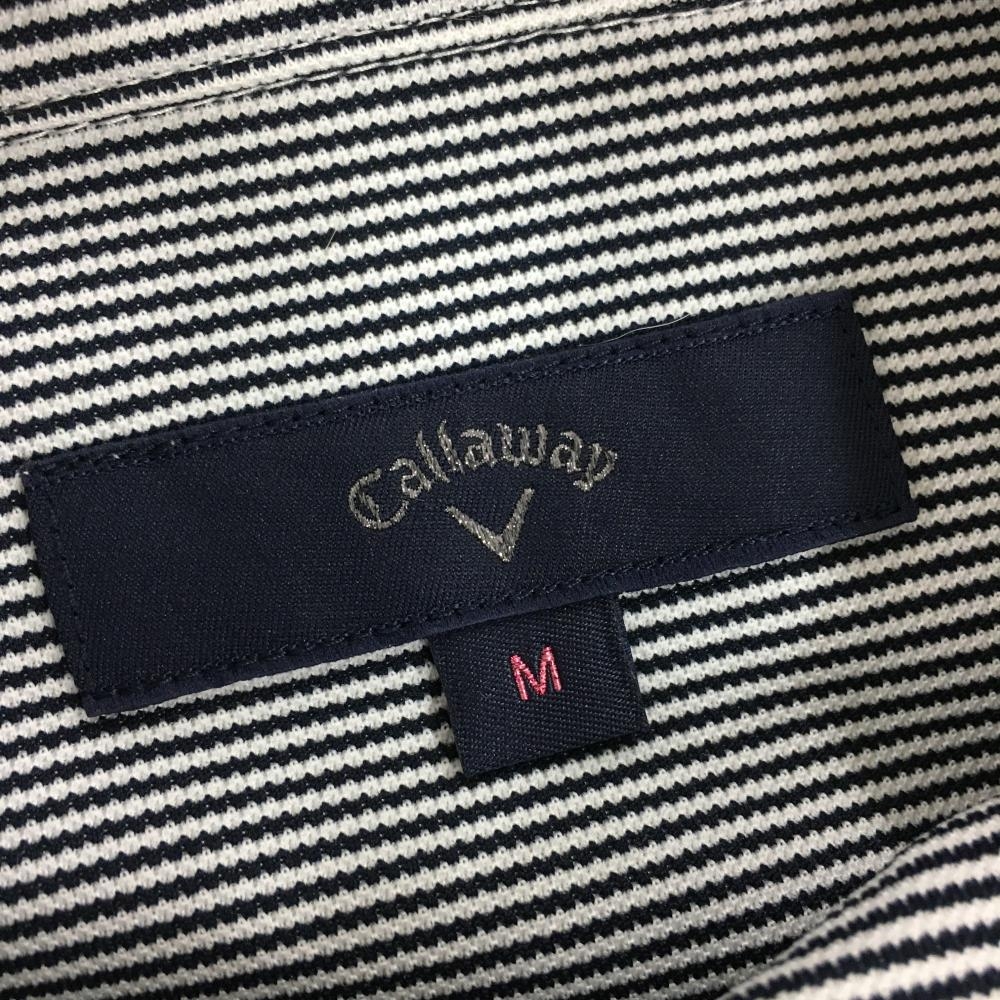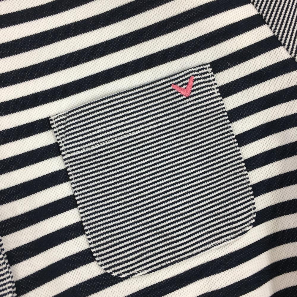 【超美品】キャロウェイ 半袖ポロシャツ 白×ネイビー ボーダー 総柄 胸ポケット レディース M ゴルフウェア Callaway