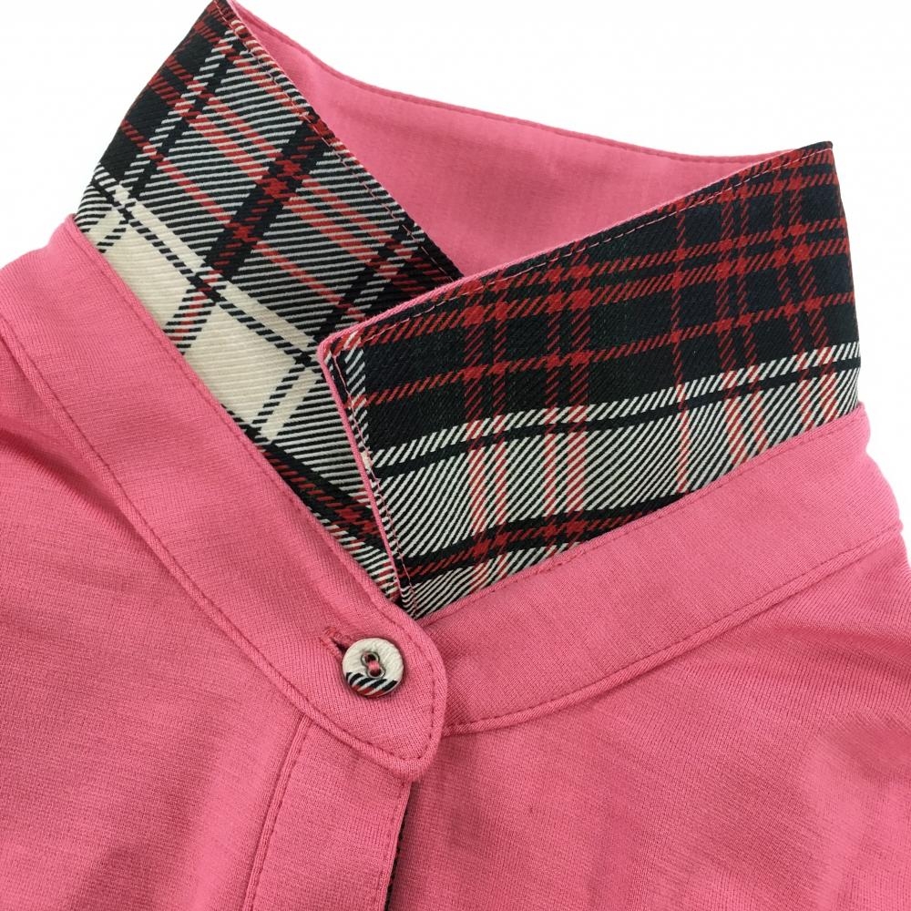【超美品】ゾーイ 半袖ポロシャツ ピンク 襟裏・前立て裏チェック レディース 38(M) ゴルフウェア ZOY