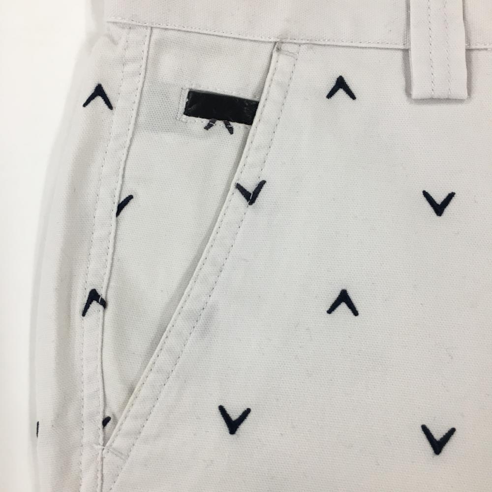 キャロウェイ パンツ 白×ネイビー 刺しゅうロゴ柄 メンズ M ゴルフウェア Callaway