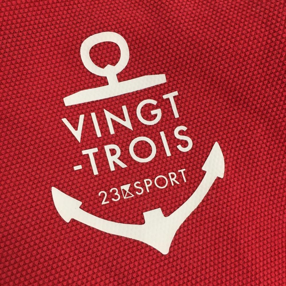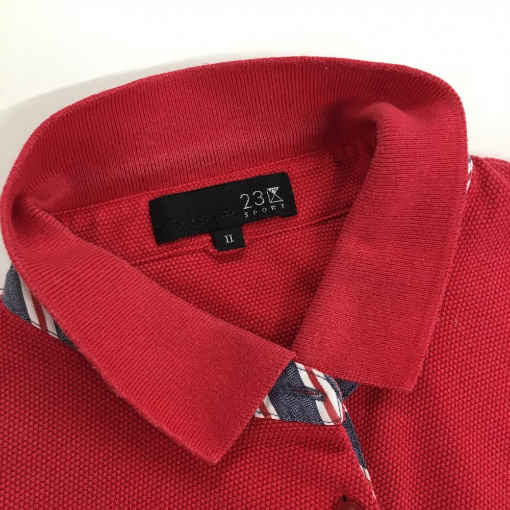 23区スポーツ 半袖ポロシャツ レッド×白 イカリ刺しゅう レディース II(L) ゴルフウェア 23区