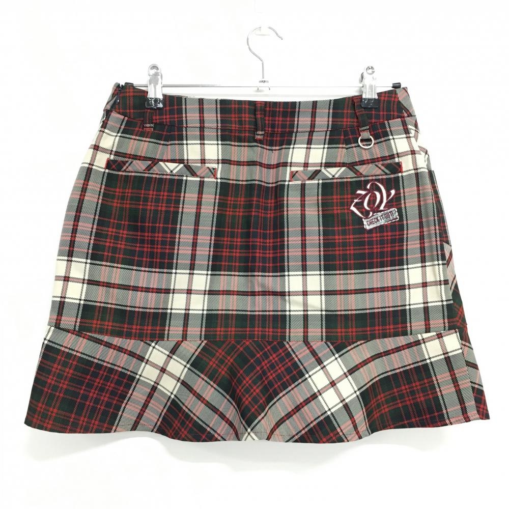 【超美品】ゾーイ スカート レッド×ネイビー チェック 裾フレアー レディース 40(L) ゴルフウェア ZOY