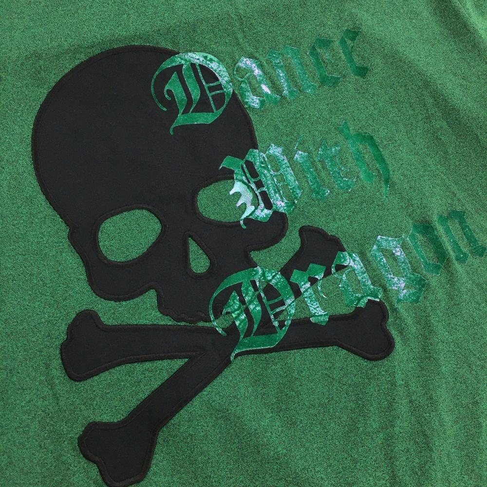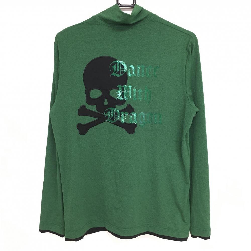 【超美品】ダンスウィズドラゴン 長袖ハイネックシャツ グリーン×黒 スカル 薄手 メンズ 2(M) ゴルフウェア Dance With Dragon
