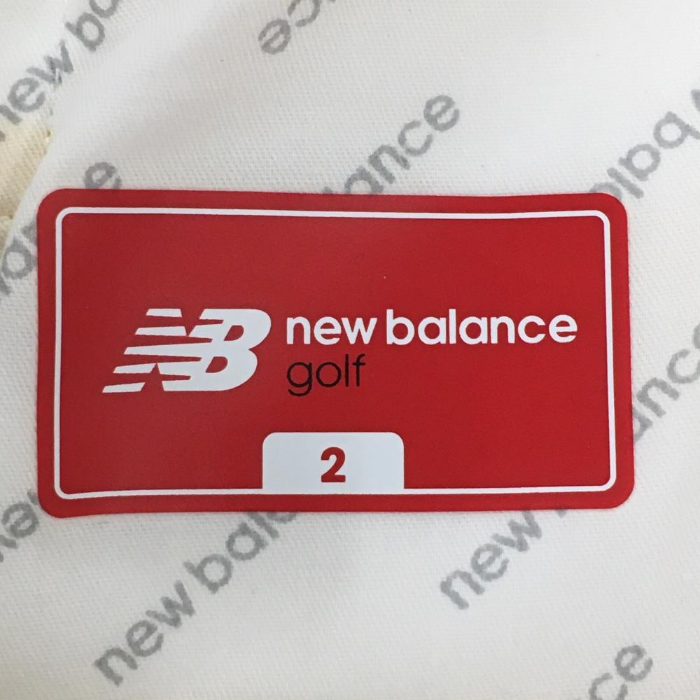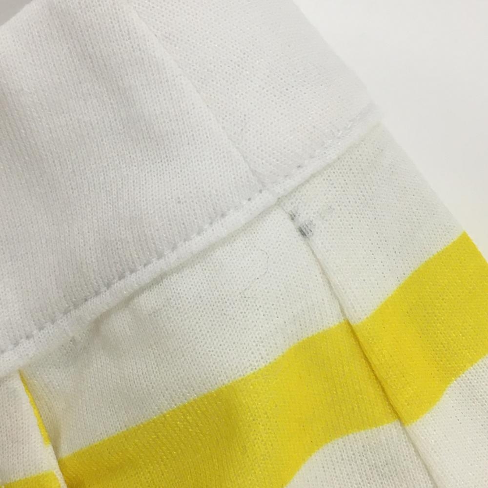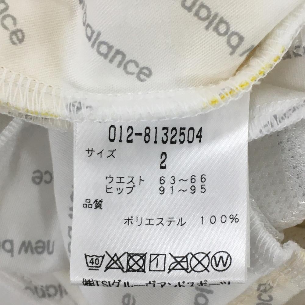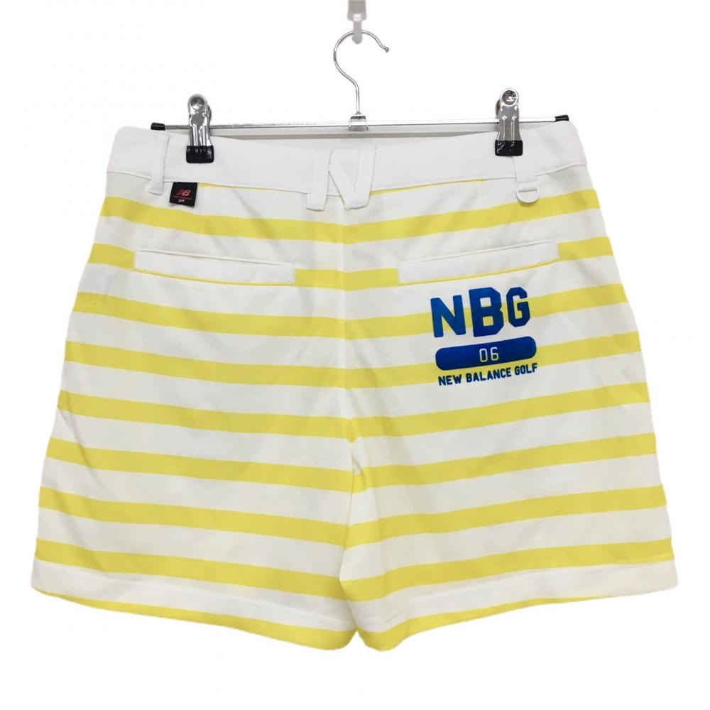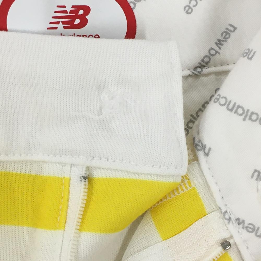 【美品】ニューバランスゴルフ キュロットスカート 白×イエロー ボーダー スニーカーワッペン レディース 2(L) ゴルフウェア New Balance