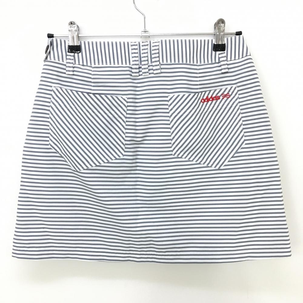 アディダス スカート 白×グレー ボーダー柄 バックロゴ刺しゅう レディース M/M ゴルフウェア adidas