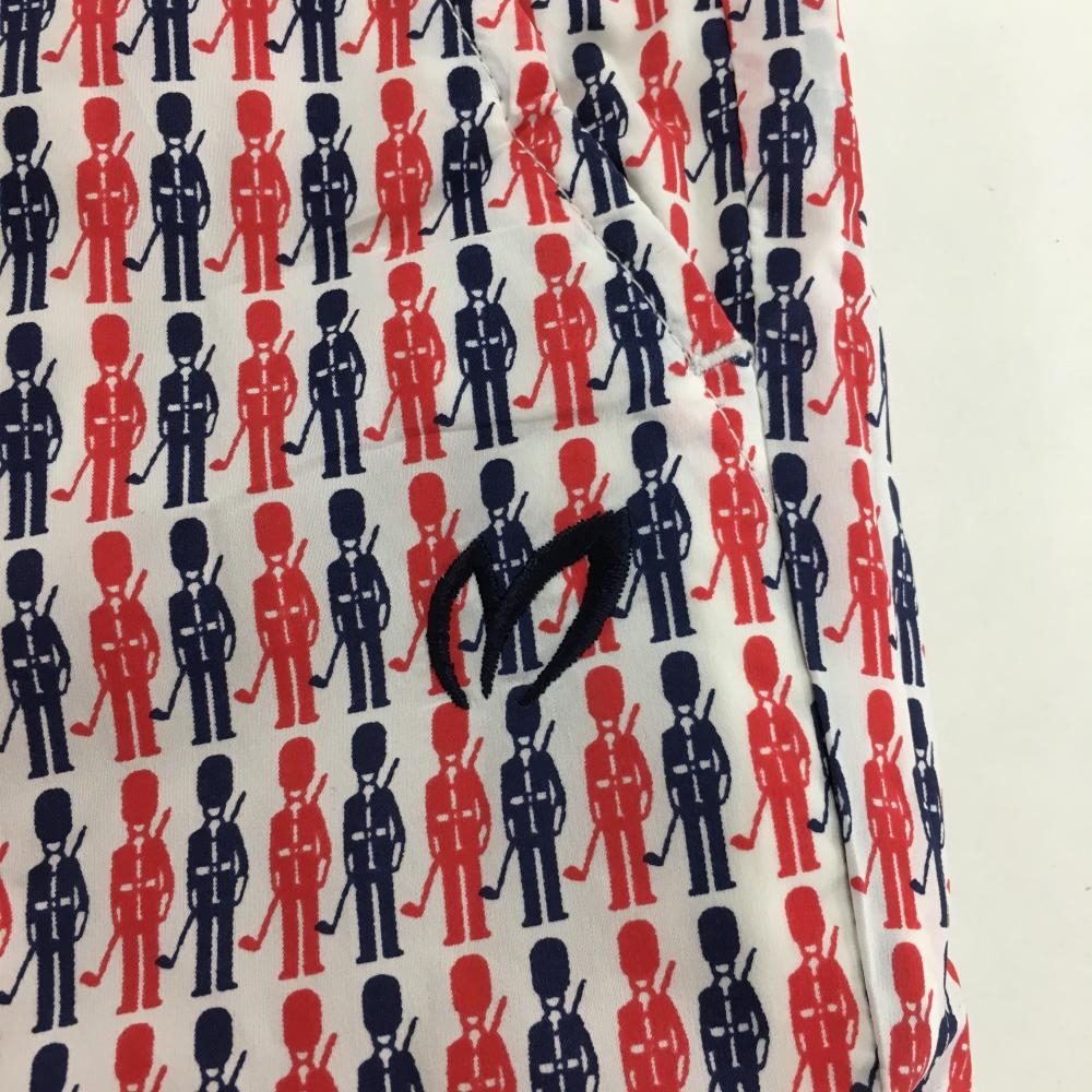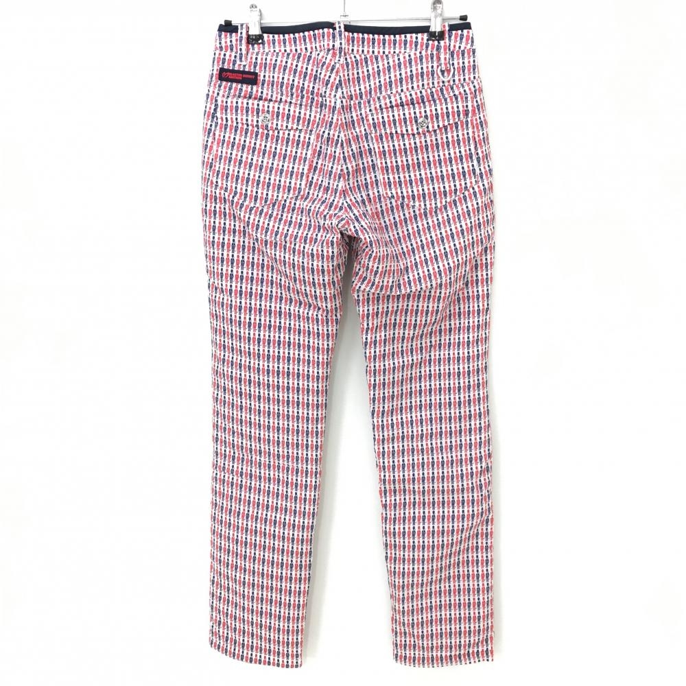 【美品】マスターバニー 中綿ナイロンパンツ 白×レッド 兵隊柄 蓄熱裏地 レディース 1(M) ゴルフウェア MASTER BUNNY EDITION