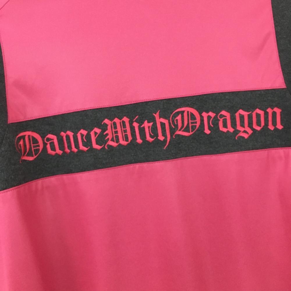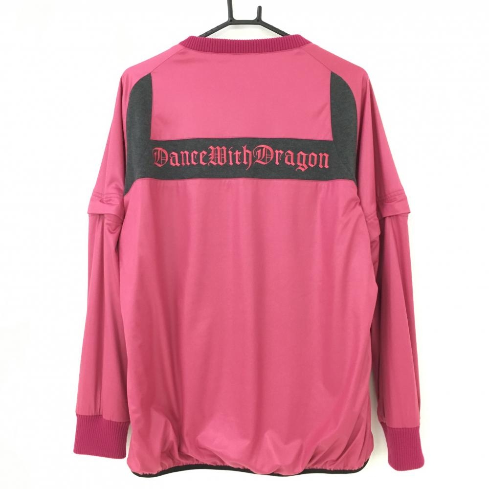 【超美品】ダンスウィズドラゴン 2WAYスニード ピンク×グレー 裏起毛 袖着脱可 Vネック メンズ 3(L) ゴルフウェア Dance With Dragon