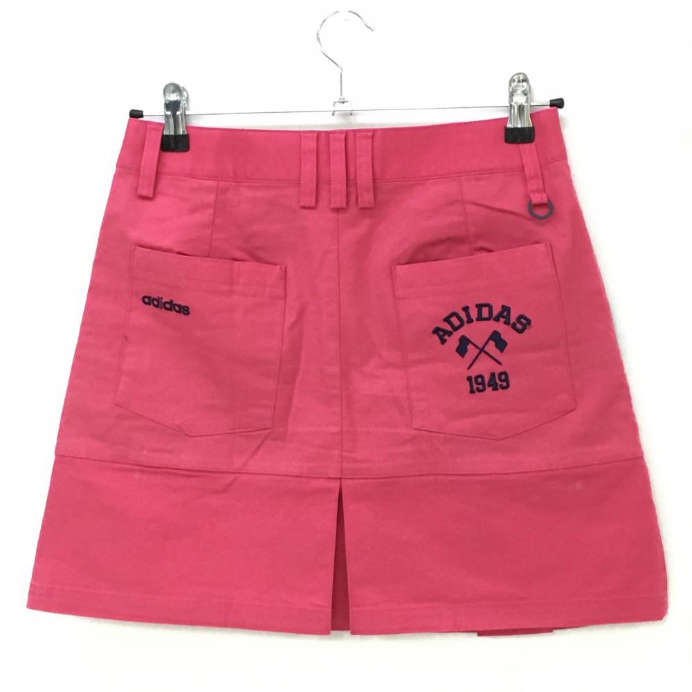 アディダス ストレッチスカート ピンク×ネイビー ロゴ刺しゅう プリーツ レディース S/P ゴルフウェア adidas