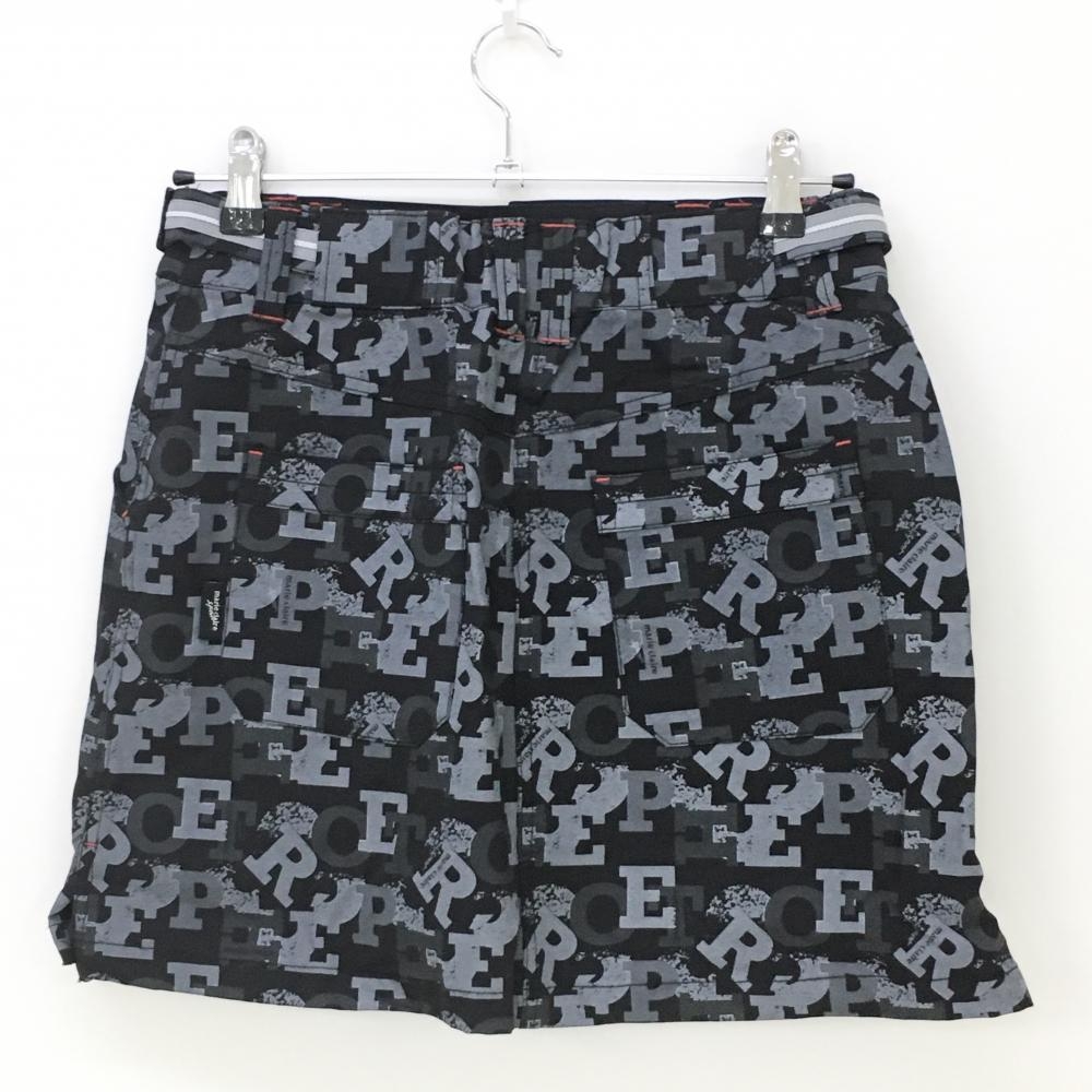 【超美品】マリクレール スカート 黒×グレー 英文字総柄 ウエスト一部ゴム レディース M ゴルフウェア marie claire