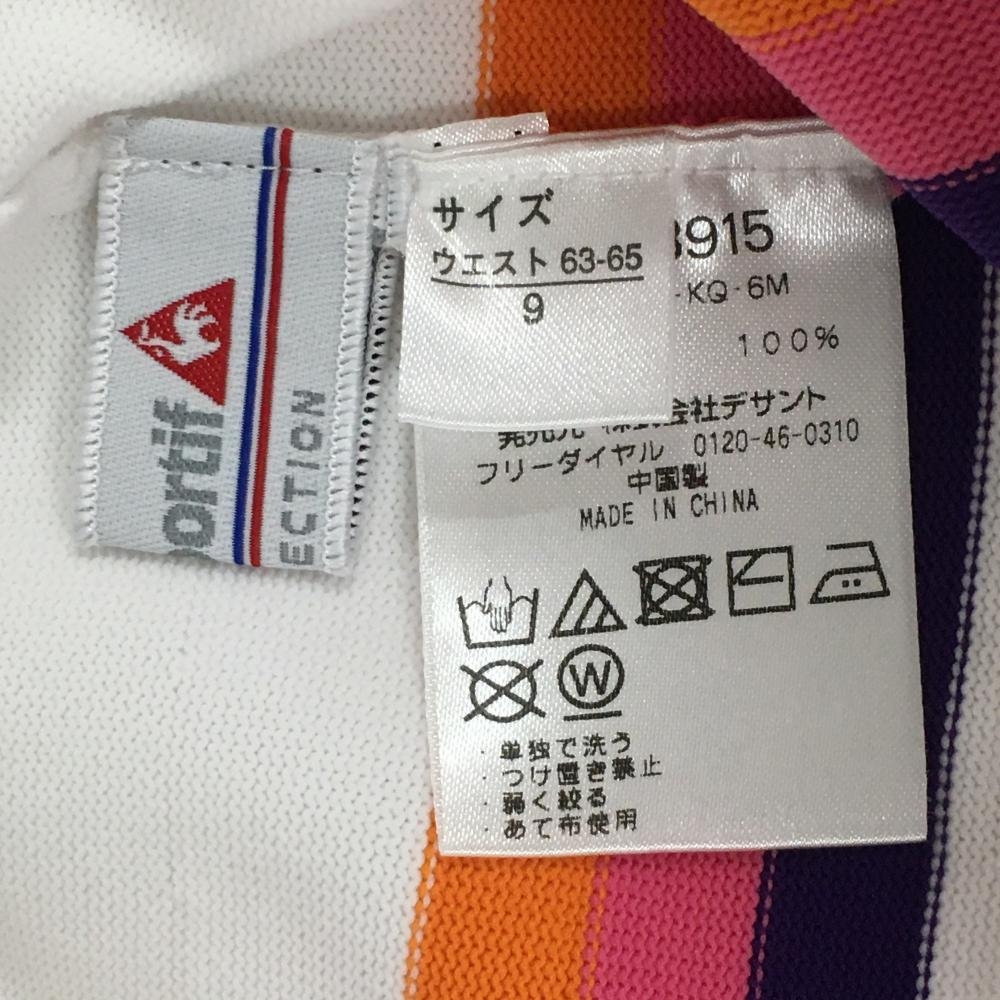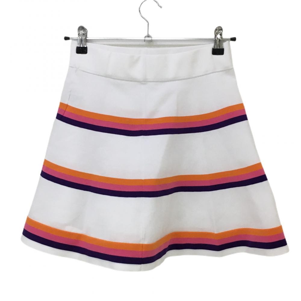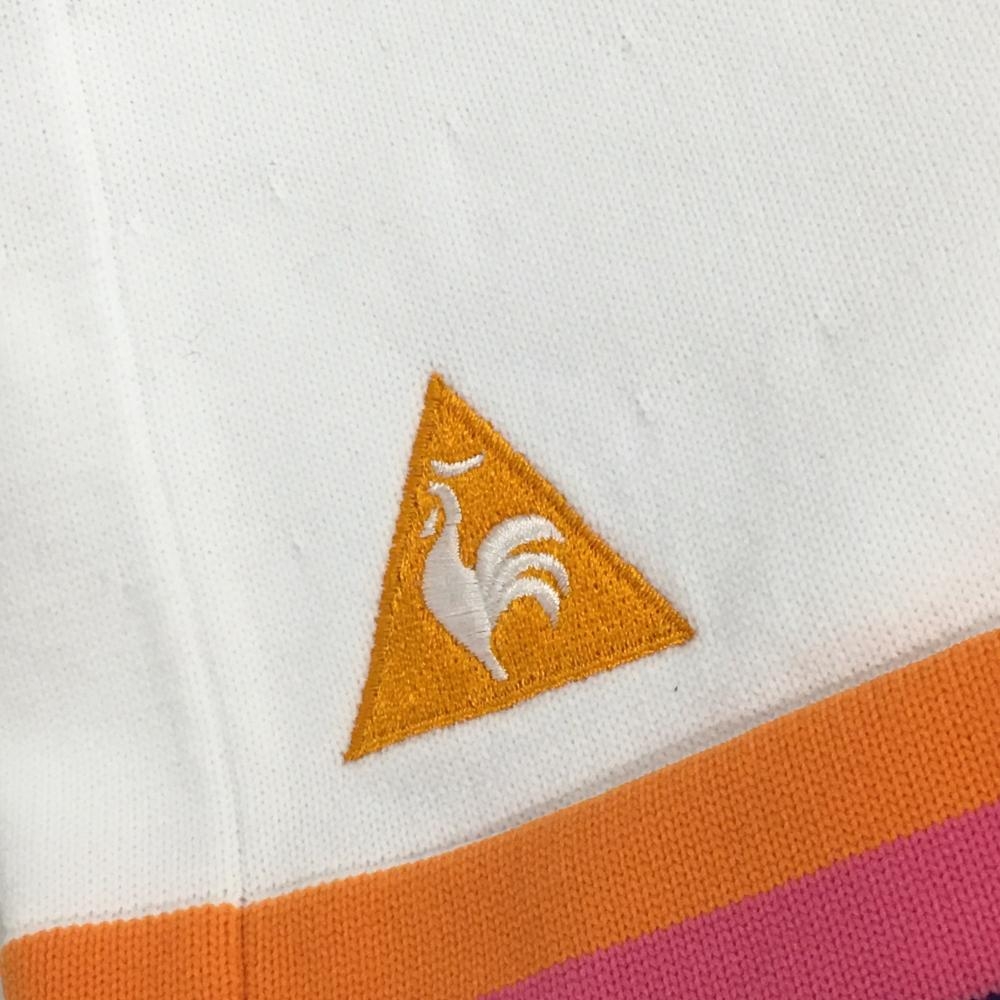 【超美品】ルコック ニットスカート 白×オレンジ ウエストゴム 裾ロゴ刺しゅう レディース 9 ゴルフウェア le coq sportif