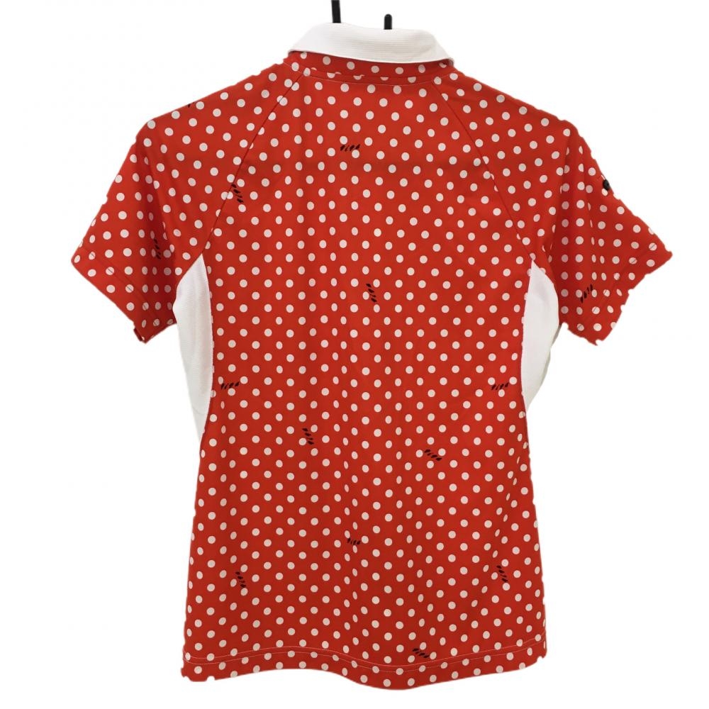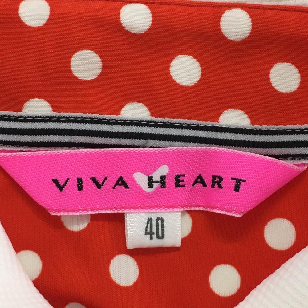 【美品】ビバハート 半袖ポロシャツ 白×レッド ドット 袖ロールアップ可 レディース 40 ゴルフウェア VIVA HEART