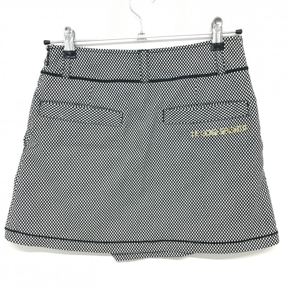 ルコック スカート 白×黒 ブロックチェック柄 総柄 ロゴ刺しゅう インナーパンツ付 レディース 7 ゴルフウェア le coq sportif