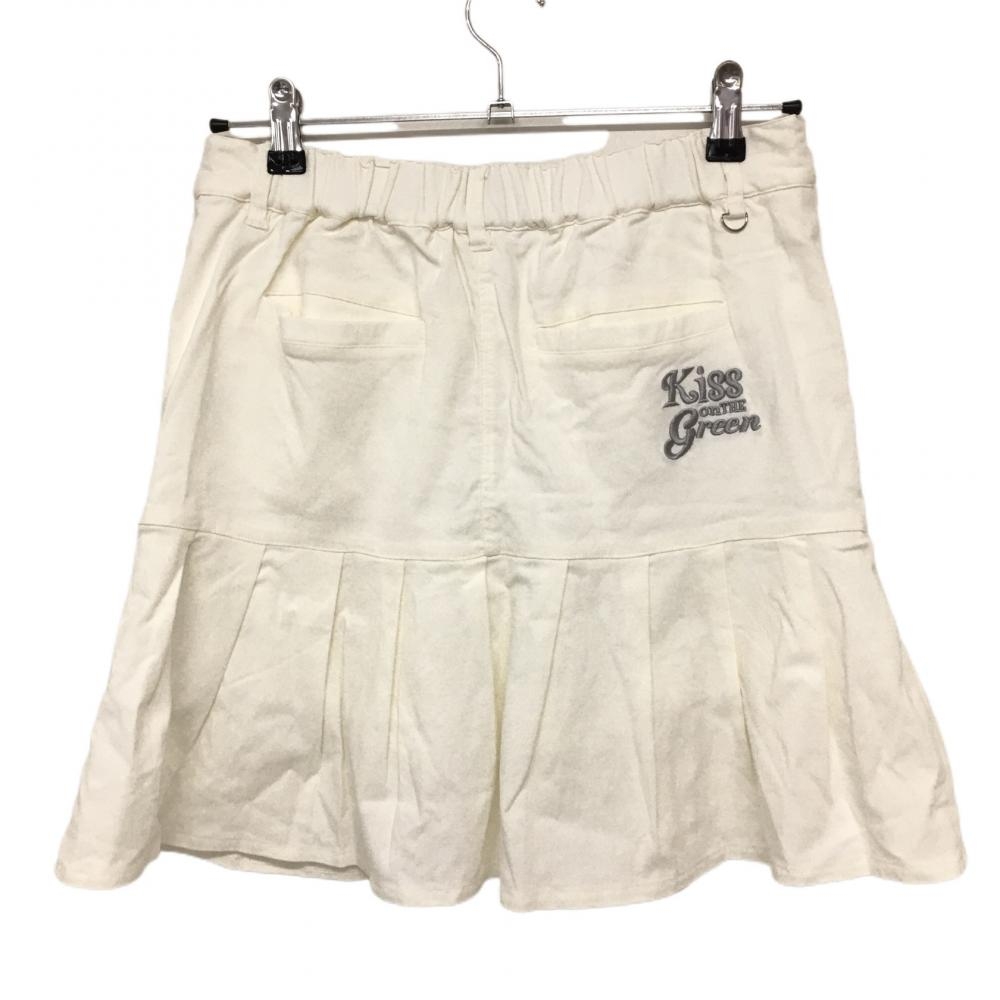 【美品】キスオンザグリーン プリーツスカート 白 ウエストゴム バックロゴ刺しゅう レディース 2(M) ゴルフウェア kiss on the green