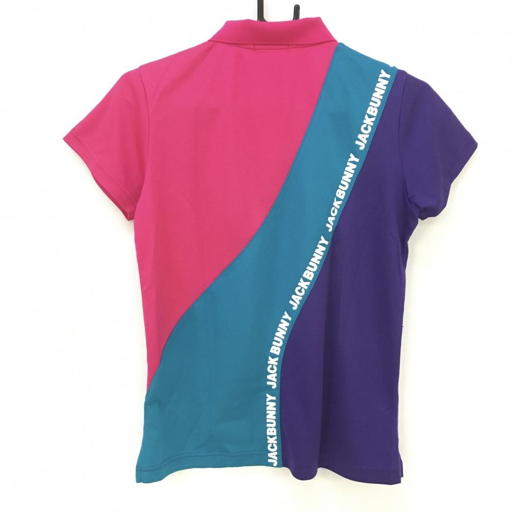 ジャックバニー 半袖ポロシャツ ピンク×パープル 3トーンカラー ロゴプリント レディース 1(M) ゴルフウェア Jack Bunny