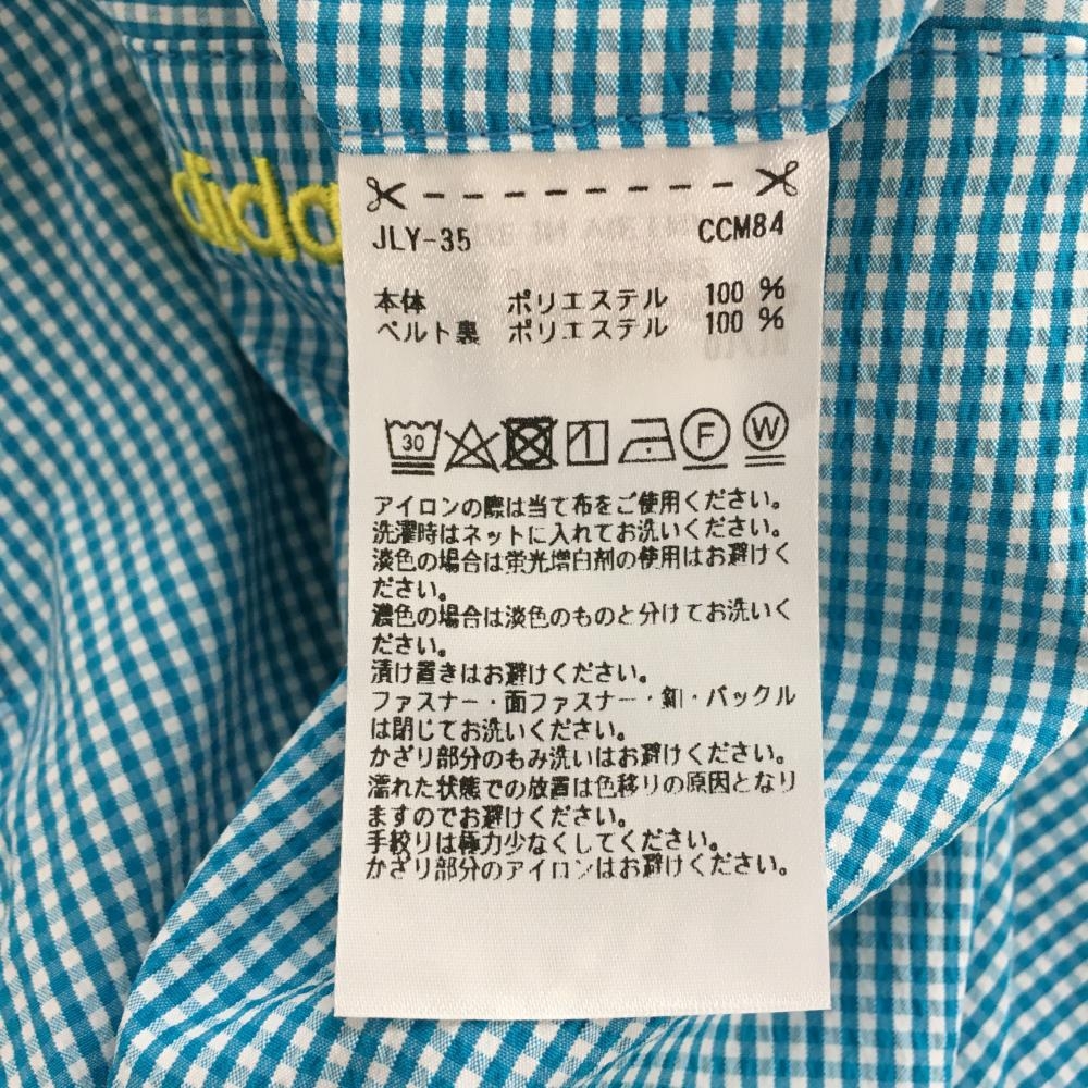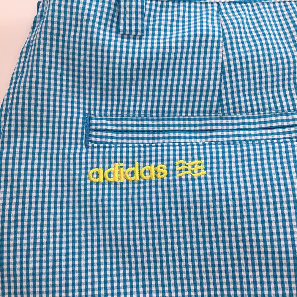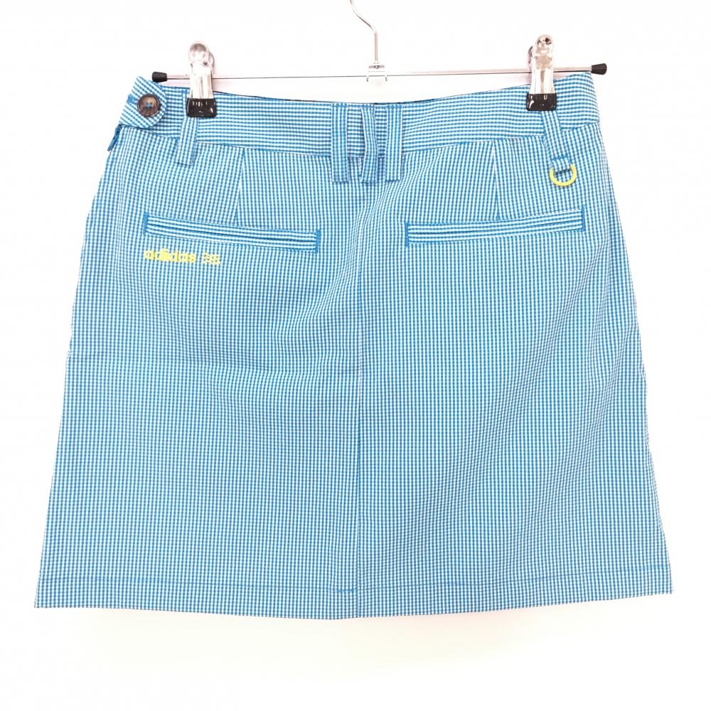 【超美品】アディダス スカート ライトブルー×白 ギンガムチェック サッカー生地 ボックスプリーツ レディース M/M ゴルフウェア adidas