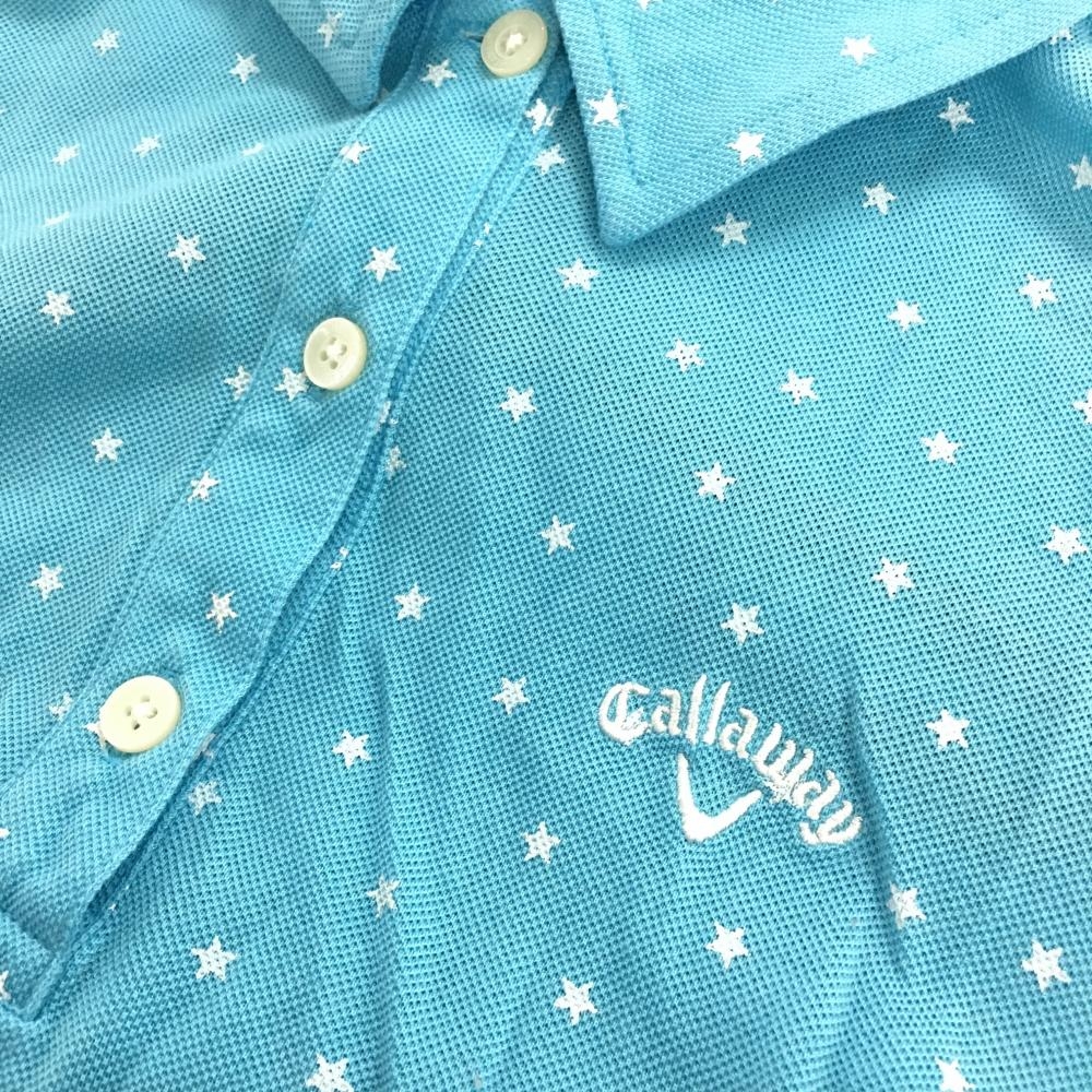 キャロウェイ 半袖ポロシャツ ライトブルー 星柄 総柄 レディース M ゴルフウェア Callaway