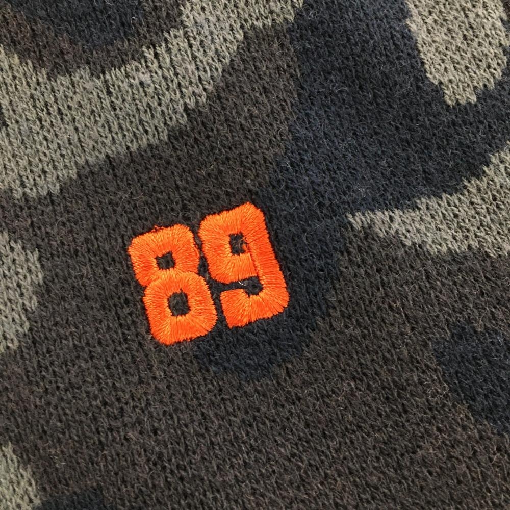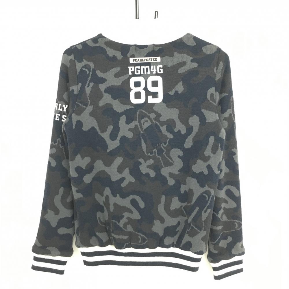 【超美品】パーリーゲイツ ニットジャケット グレー×ネイビー 迷彩 カモフラ ロケット柄 レディース 0(S) ゴルフウェア PEARLY GATES
