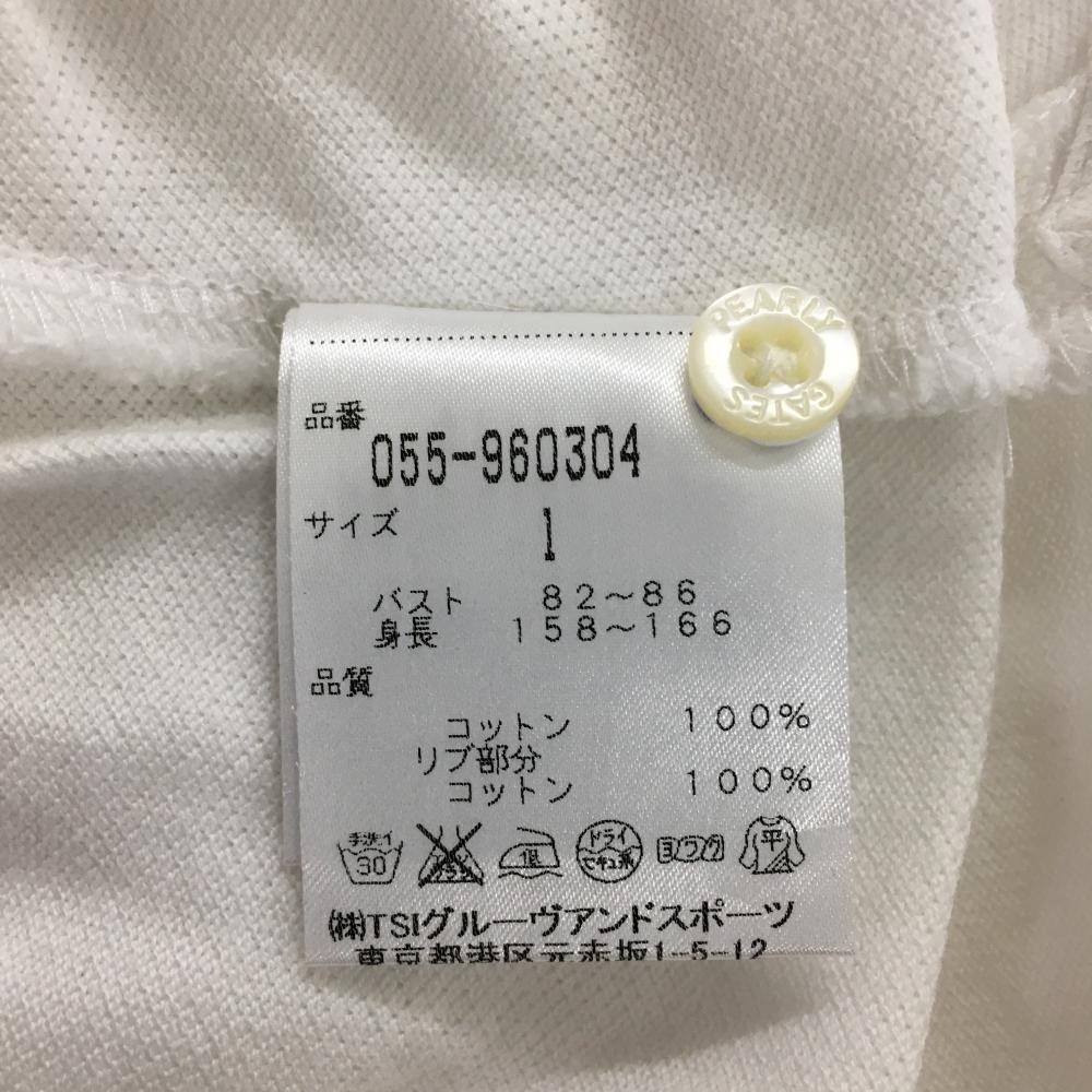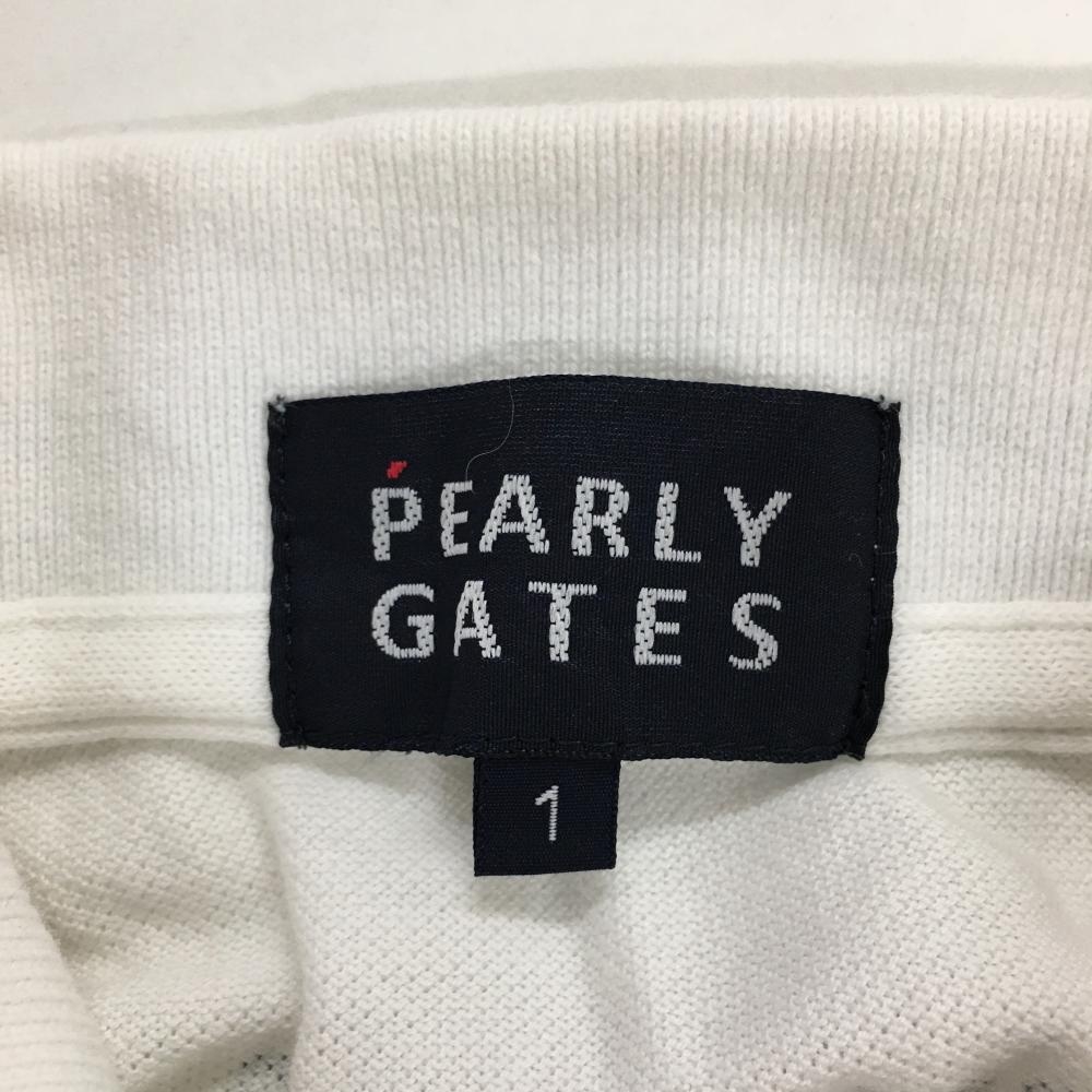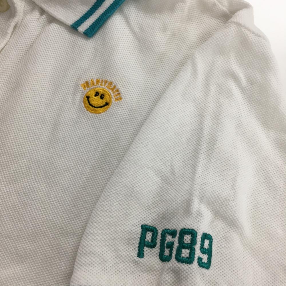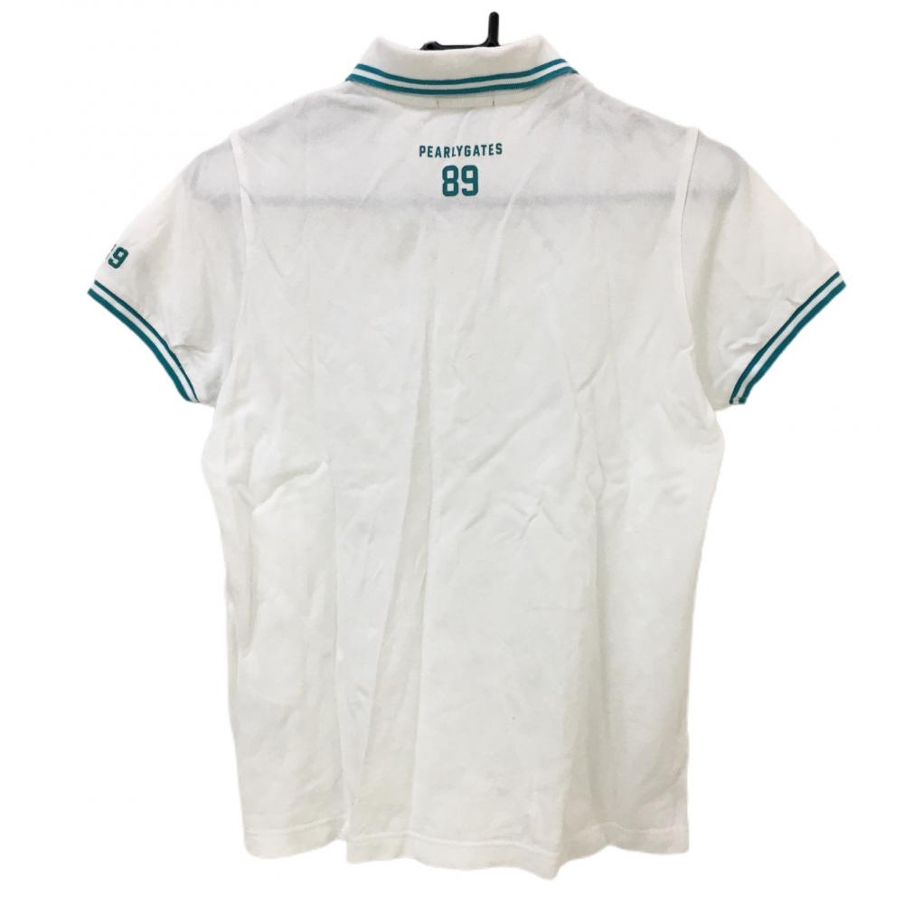 【美品】パーリーゲイツ 半袖ポロシャツ 白×グリーン リブライン ニコちゃん スマイル レディース 1(M) ゴルフウェア PEARLY GATES