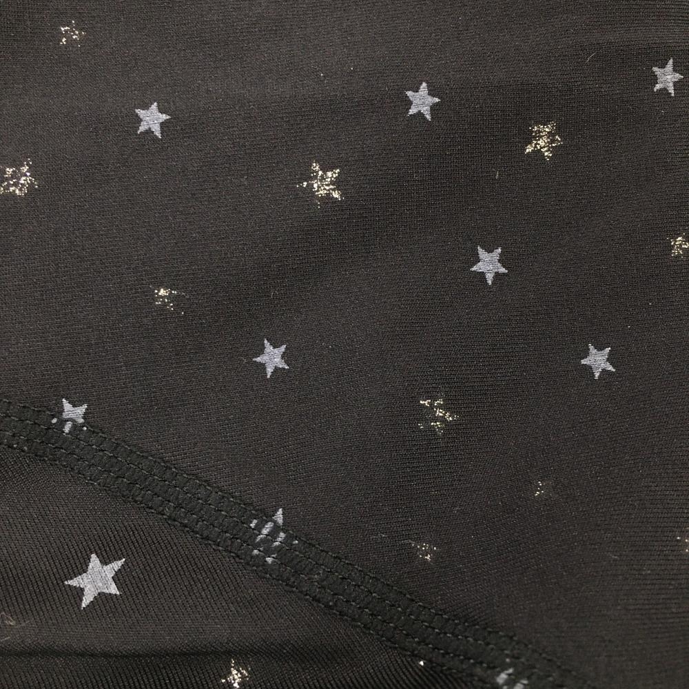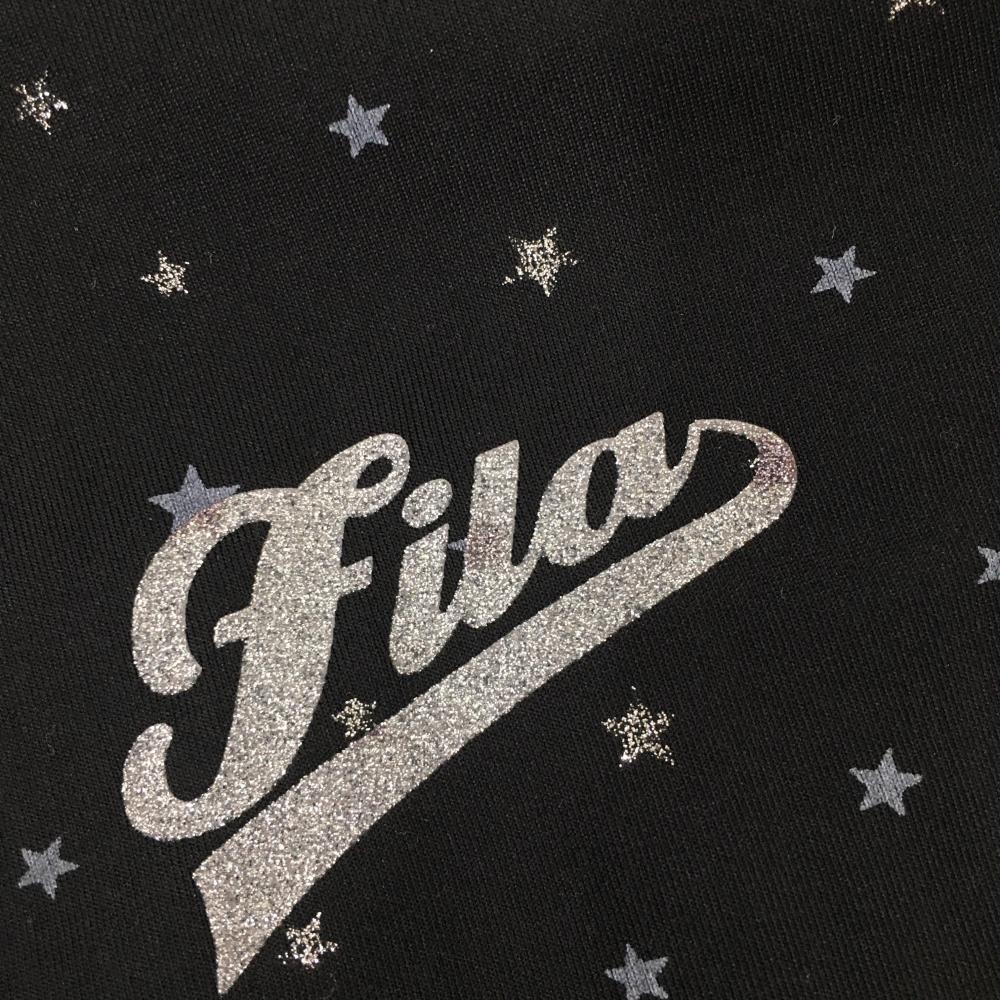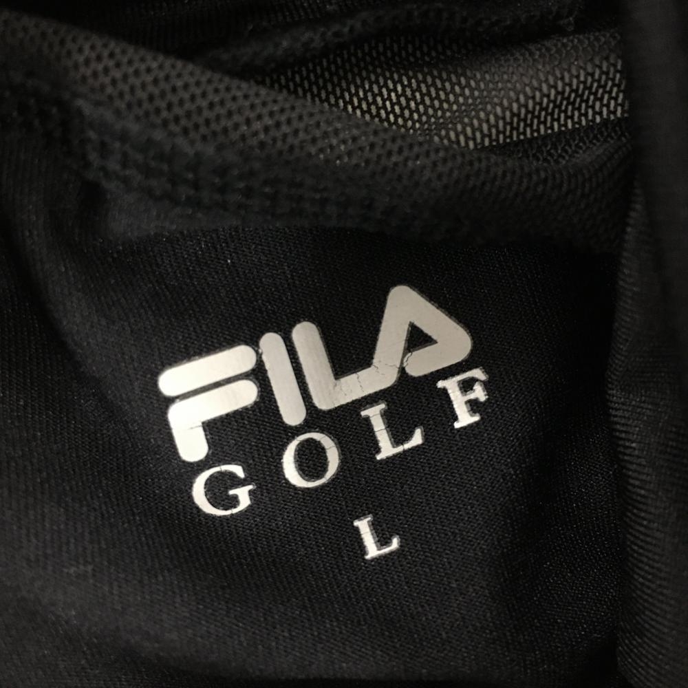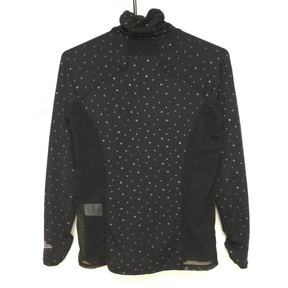 【美品】フィラゴルフ インナーシャツ 黒×グレー 星柄 総柄 ラメ ネック、袖ギャザー 一部メッシュ レディース L ゴルフウェア FILA GOLF