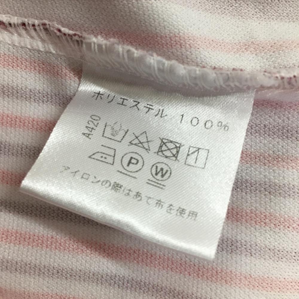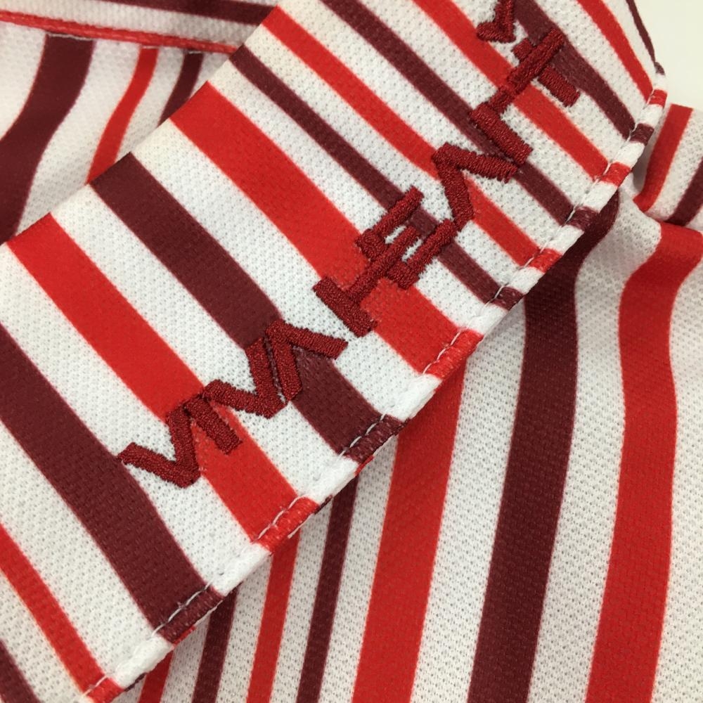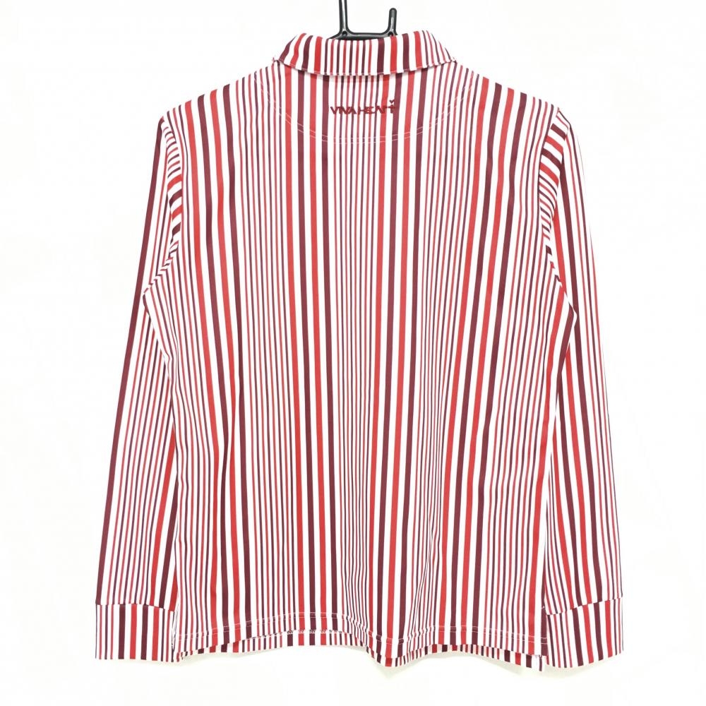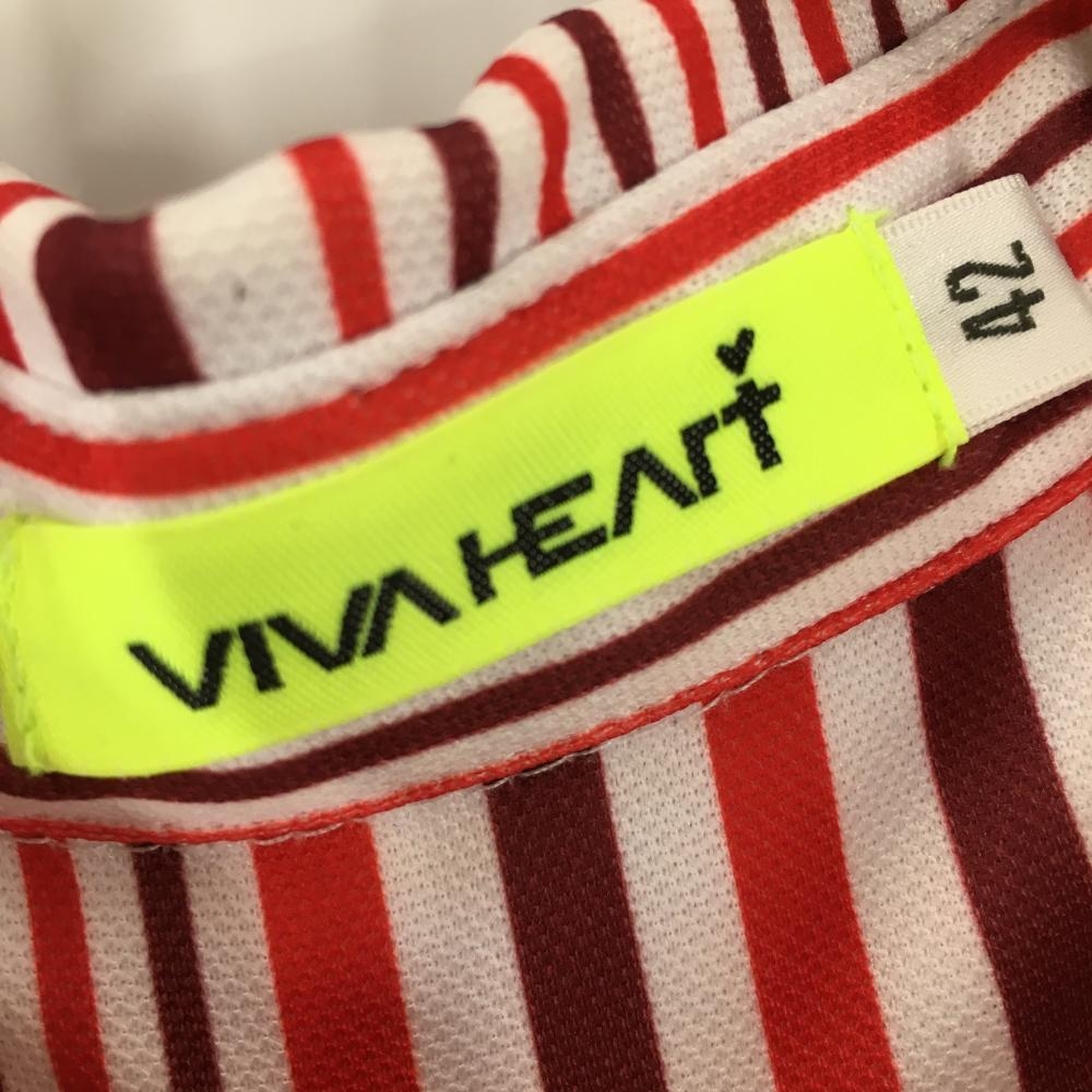 ビバハート 長袖ポロシャツ 白×レッド ストライプ 総柄 襟ロゴ刺しゅう フェイクボタン レディース 42 ゴルフウェア VIVA HEART
