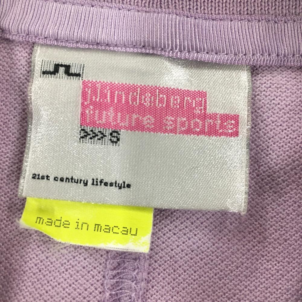 【美品】ジェイリンドバーグ 半袖ポロシャツ ライトパープル×ブルーグリーン ラインストーンロゴ レディース S ゴルフウェア J.LINDEBERG